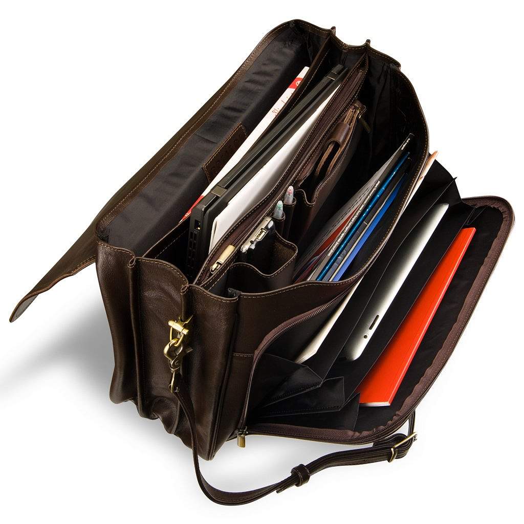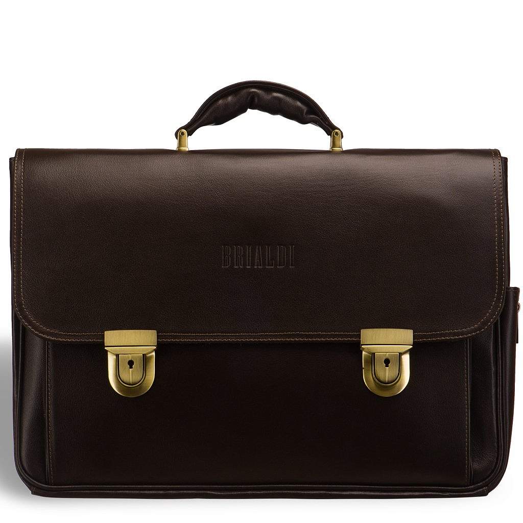 Объемный классический портфель для документов с 3-мя отделениями BRIALDI Konstantin (Константин) brown BR09546XU Коричневый