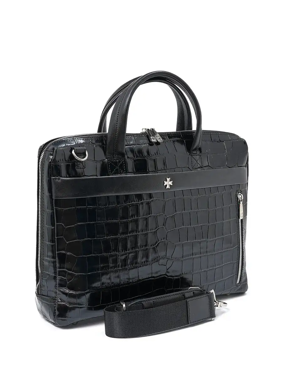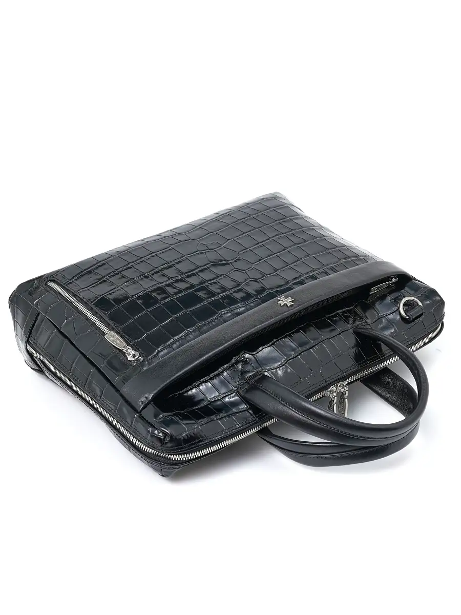 Портфель-сумка NARVIN 9752-Croco Black из натуральной кожи