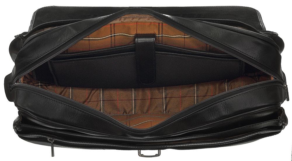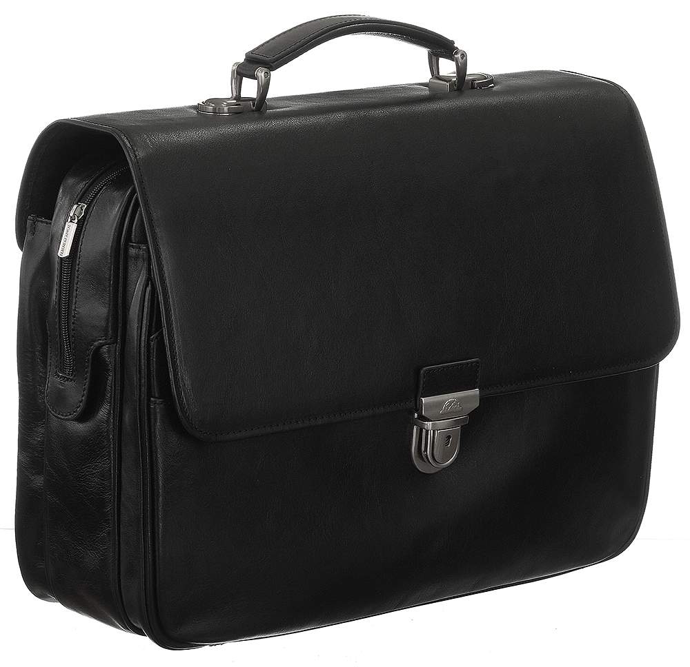 Практичный портфель с оригинальным дизайном. Удобный плечевой ремешок не портит картины. Крышка модели закрывается на стильный замок с ключом. Внутри находится три основных отделения один из которых запирается на молнию. На стенках располагаются большое количество скрытых карманов для мобильного телефона и шариковых ручек. На задней внешней стороне есть отсек закрывающийся на молнию. Изделие выполнено из высококачественной натуральной кожи.