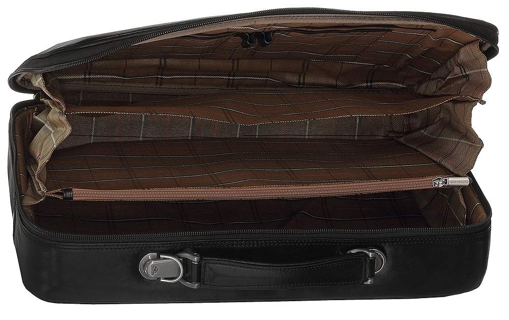 Портфель мужской Tony Perotti из натуральной кожи.Три основные секции, отделение закрывается на молнии для бумаг первой необходимости,множество отделений для визиток,кредиток,записных книжек,авторучек. Наружное отделение закрывается на молнии, общая молния для закрытия,в комплекте регулируемый ремень для ношения через плечо,замок под ключ.