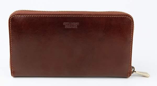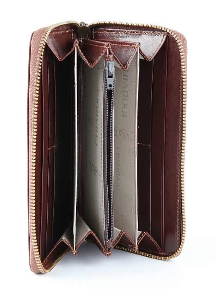 Мужское кожаное портмоне. Внутри 2 больших отделения для купюр и 2 продольных кармана для купюр, отделение на молнии для мелочи, 12 карманов для кредитных карт. Закрывается на молнию.