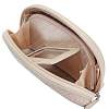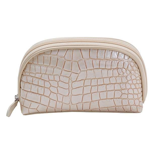 Удобная и красивая косметичка из изящно тисненной и сверкающей лаком кожи. Хороша и сама по себе, и в компании с родственными аксессуарами – портмоне, ключницей, визитницей, выполненными в том же стиле из такой же кожи. Жесткий карман-перегородка делит модель надвое и позволяет удобно рассортировать косметику. На одной из внутренних стенок – карман на молнии, на другой – зеркальце на кнопке в изящной кожаной оправе. Благодаря боковым складкам косметичка широко и удобно открывается. Продается в стильной подарочной коробке.