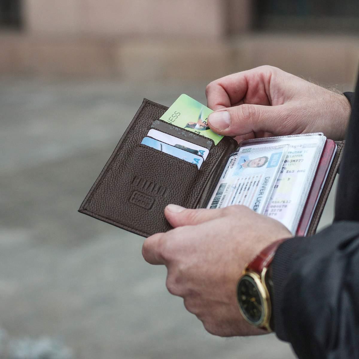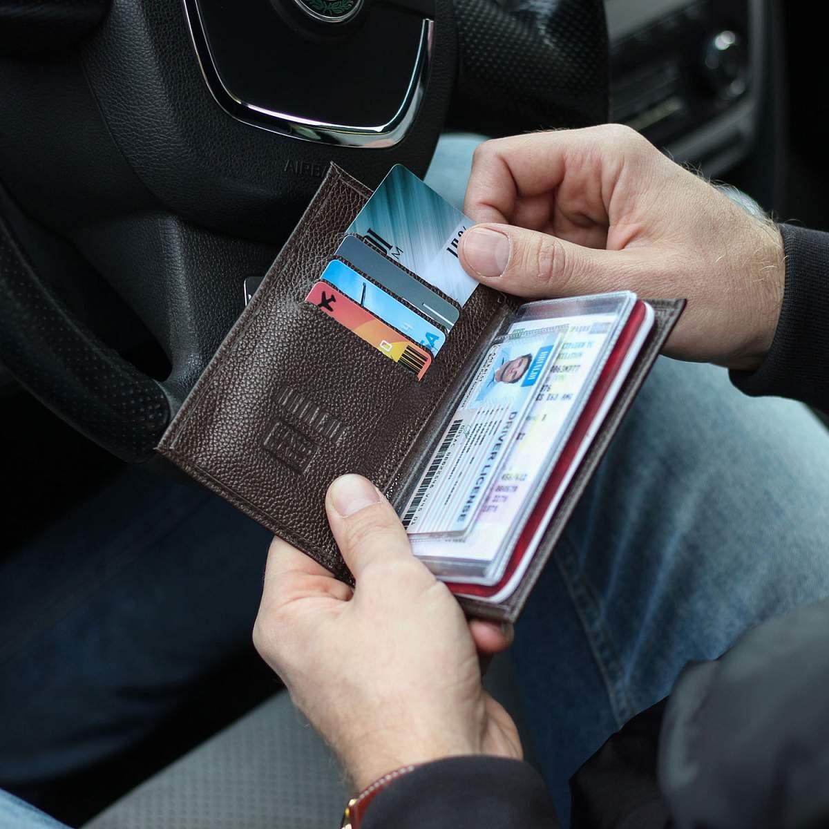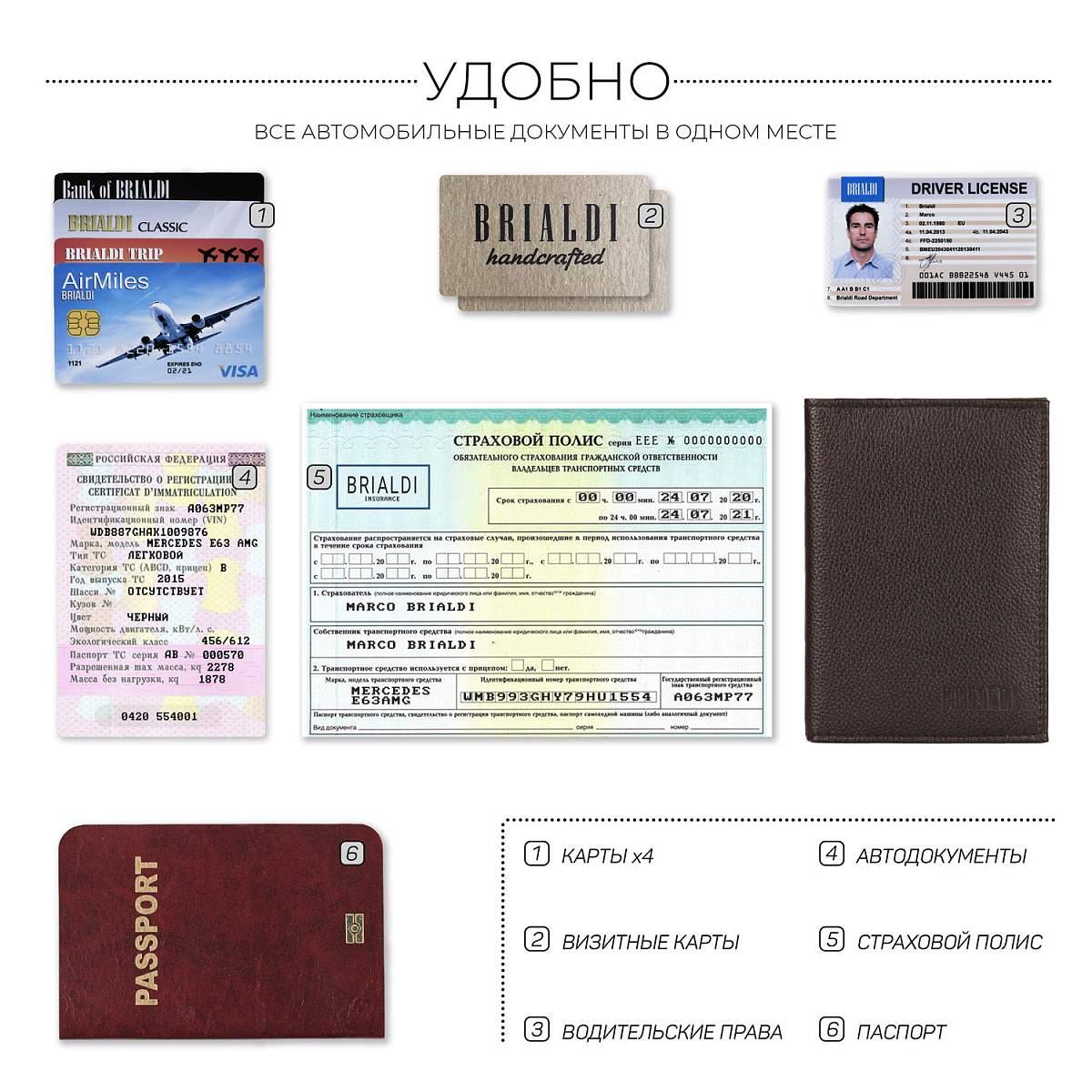 В нем предусмотрены отделения для всех документов, которые могут быть у водителя. В пластиковых вкладышах есть место для прав, свидетельства о регистрации автомобиля (СТС) и даже для страховки. В карманах на кожаных разворотах можно хранить паспорт, пластиковые карты и купюры.