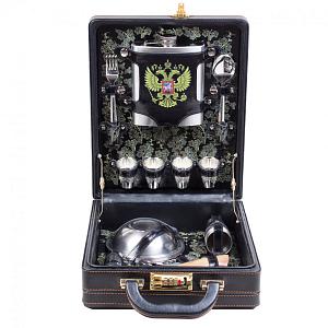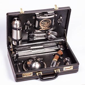 Подарочный набор охотника «Вепрь» в кожаной сумке (3 персоны) AKSO 230КК3