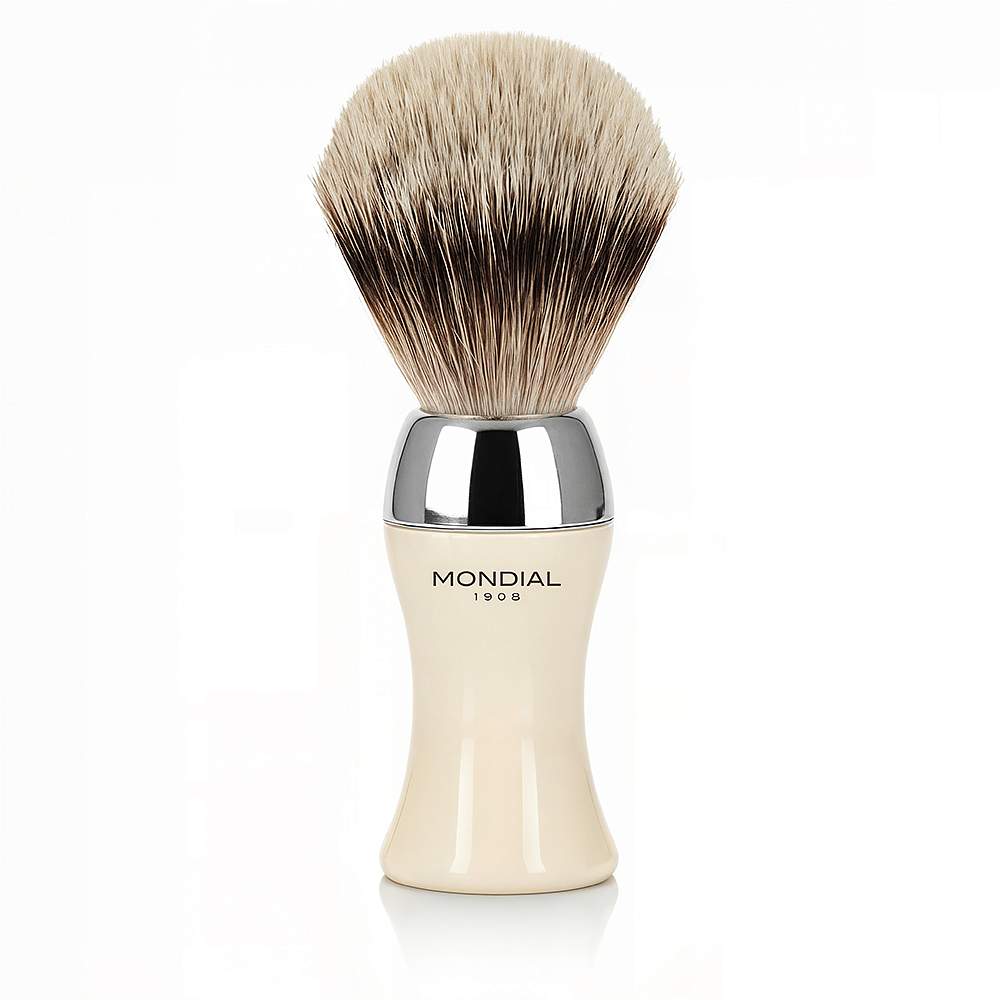 Помазок для бритья MONDIAL HERITAGE CLASSIC, смола в цвете слоновая кость/никелированная латунь, натуральный ворс барсука BEST BADGER, размер узла L (22,5 мм)