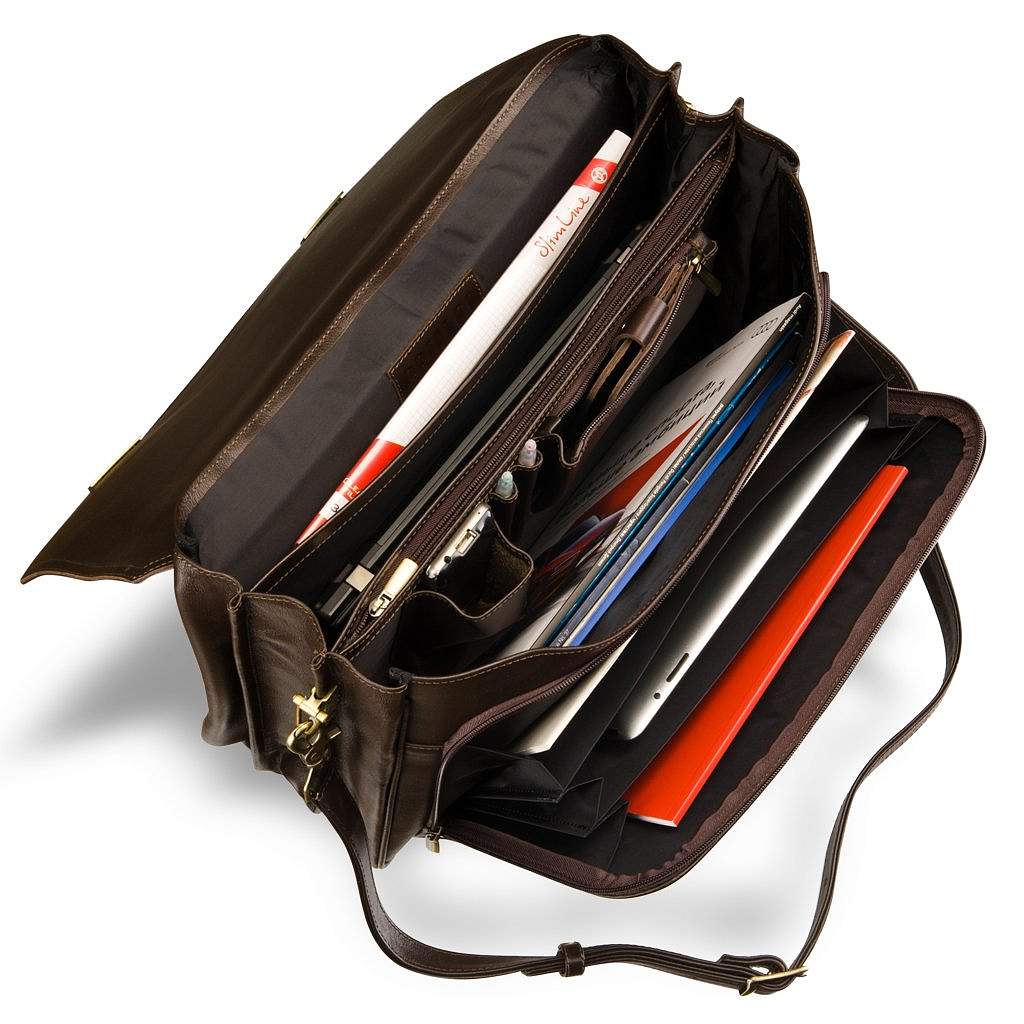 Объемный классический портфель для документов с 3-мя отделениями BRIALDI Konstantin (Константин) brown BR09546XU Коричневый