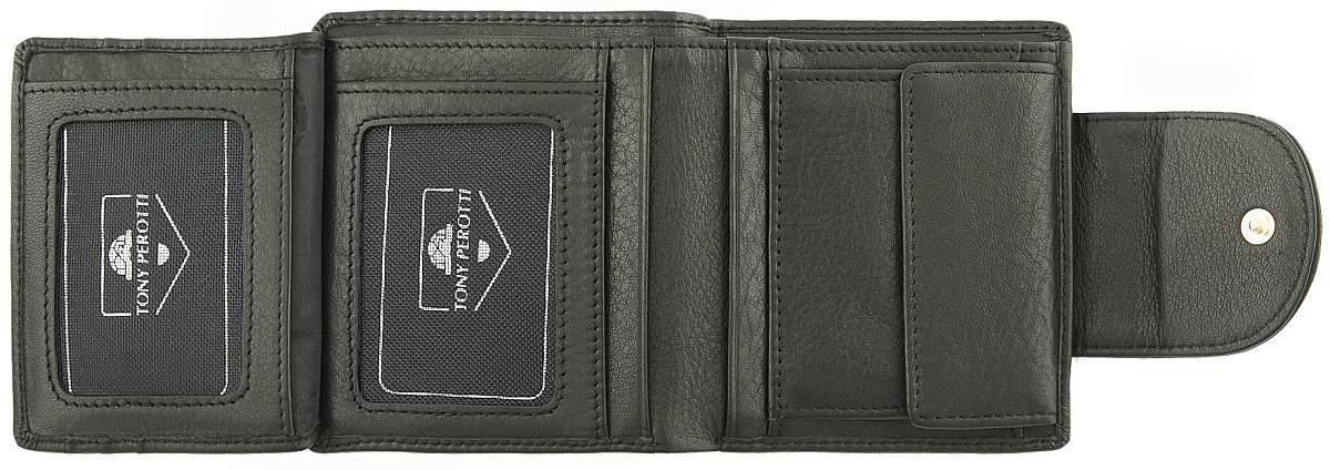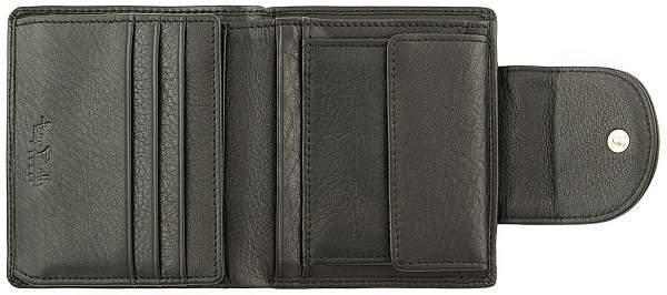 Портмоне - кошелек на кнопке. Внутри два отдела для купюр, монетница на кнопке, много дополнительных отделений для визиток, кредиток, фотографий и других мелочей.