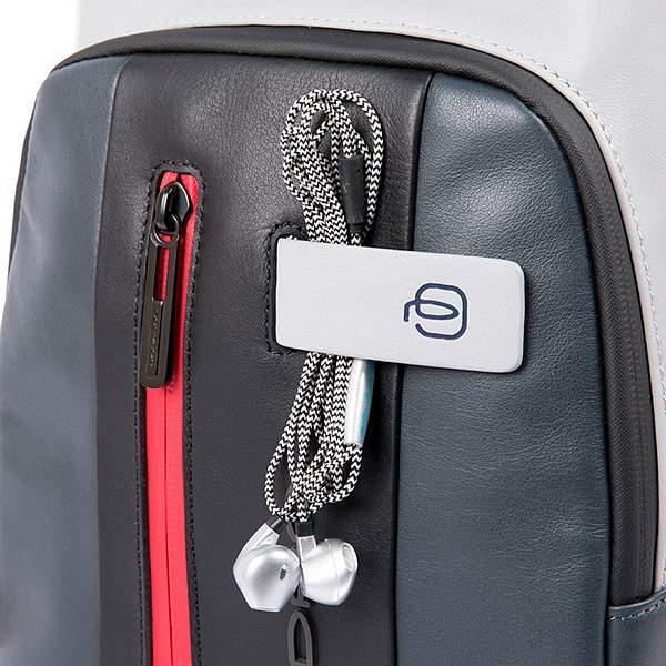 Стильный кожаный рюкзак с одной лямкой из новой коллекции Piquadro Urban. Изготовлен из гладкой телячьей кожи с использованием черненой фурнитуры. Рюкзак имеет одно отделение с кармашками для телефона и письменных принадлежностей. На передней части расположен карман на молнии и крепление для наушников. Рюкзаки с одной лямкой это популярный тренд последних лет, многие используют их в качестве альтернативы небольших сумок через плечо. Данная модель рюкзака выпускается в 4 расцветках, от классической черной до выделяющейся серой с яркими молниями.