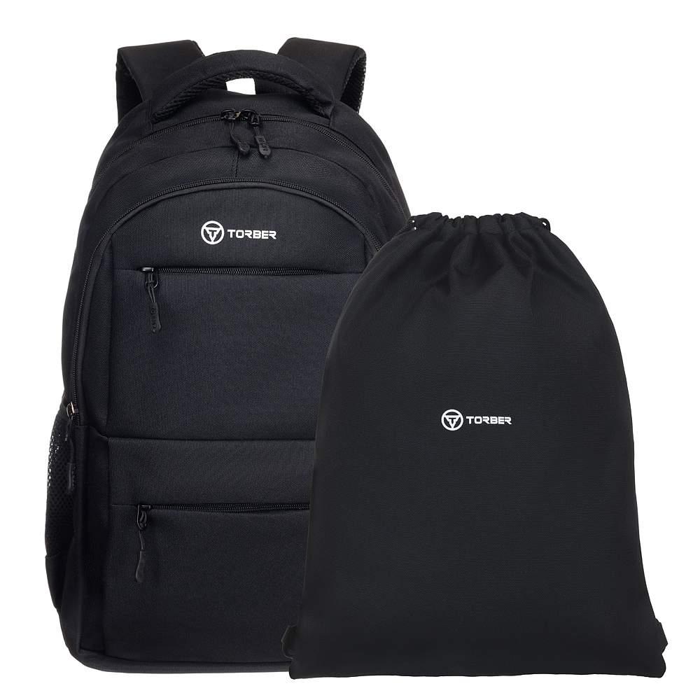 Рюкзак TORBER CLASS X, черный, полиэстер 900D, 45 x 30 x 18 см + Мешок для сменной обуви в подарок! T2602-23-BLK