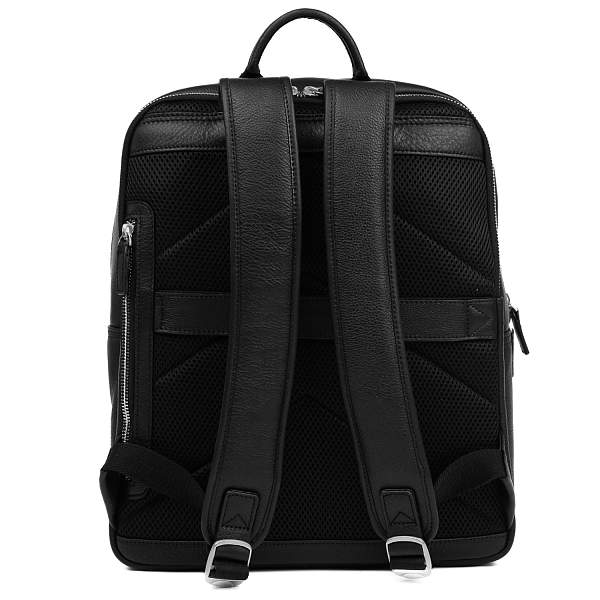 Два вместительных отделения закрываются на полукруглую молнию с 2 бегунками. Внутри основного отделения есть 3 кармана для мелочей: 2 открытых и на молнии, а также секция для гаджетов или документов. На лицевой стороне расположен накладной карман на молнии. На тыльной стороне предусмотрен вертикальный карман быстрого доступа на молнии, а также стропа для крепления аксессуара на ручку чемодана. Спинка и регулируемые лямки (ширина – 5 см) оснащены системой циркуляции воздуха AirFlow и обеспечивают комфортное использование изделия, снижая нагрузку на спину. Верхняя ручка позволяет носить аксессуар в руке. Аксессуар вмещает формат А4. Цвет фурнитуры - серебро.