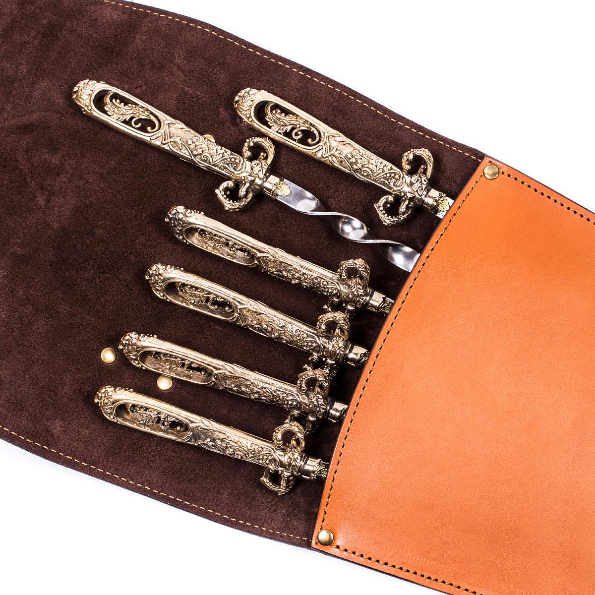 Подарочный набор шампуров 6шт. (мушкетёр) в колчане из натуральной кожи AKSO 382КК6-Г1