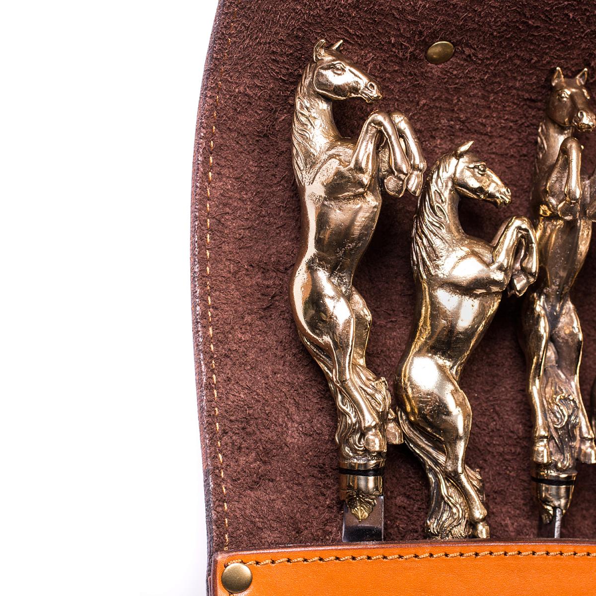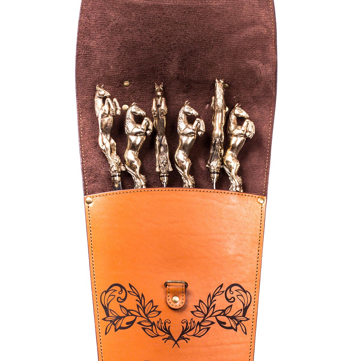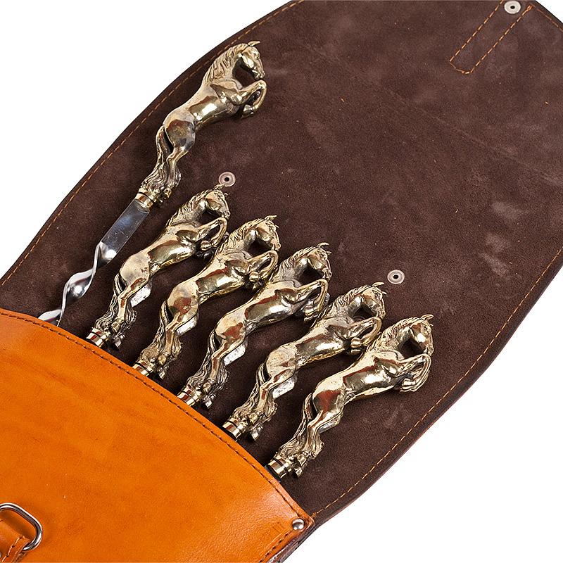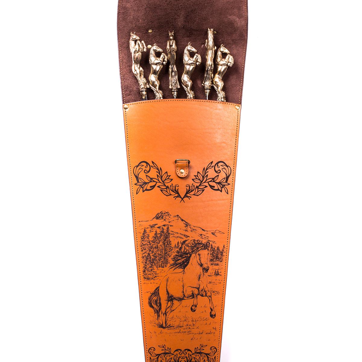 Подарочный набор шампуров 6шт. (Лошадь) в колчане из натуральной кожи AKSO 374ЛО6-Г1