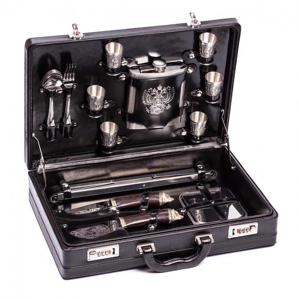 Элегантный набор для отдыха на природе в стильном кейсе с внутренней отделкой и росписью ручной работы. Превосходный выбор для дорогого и запоминающегося подарка.