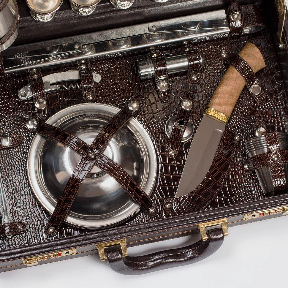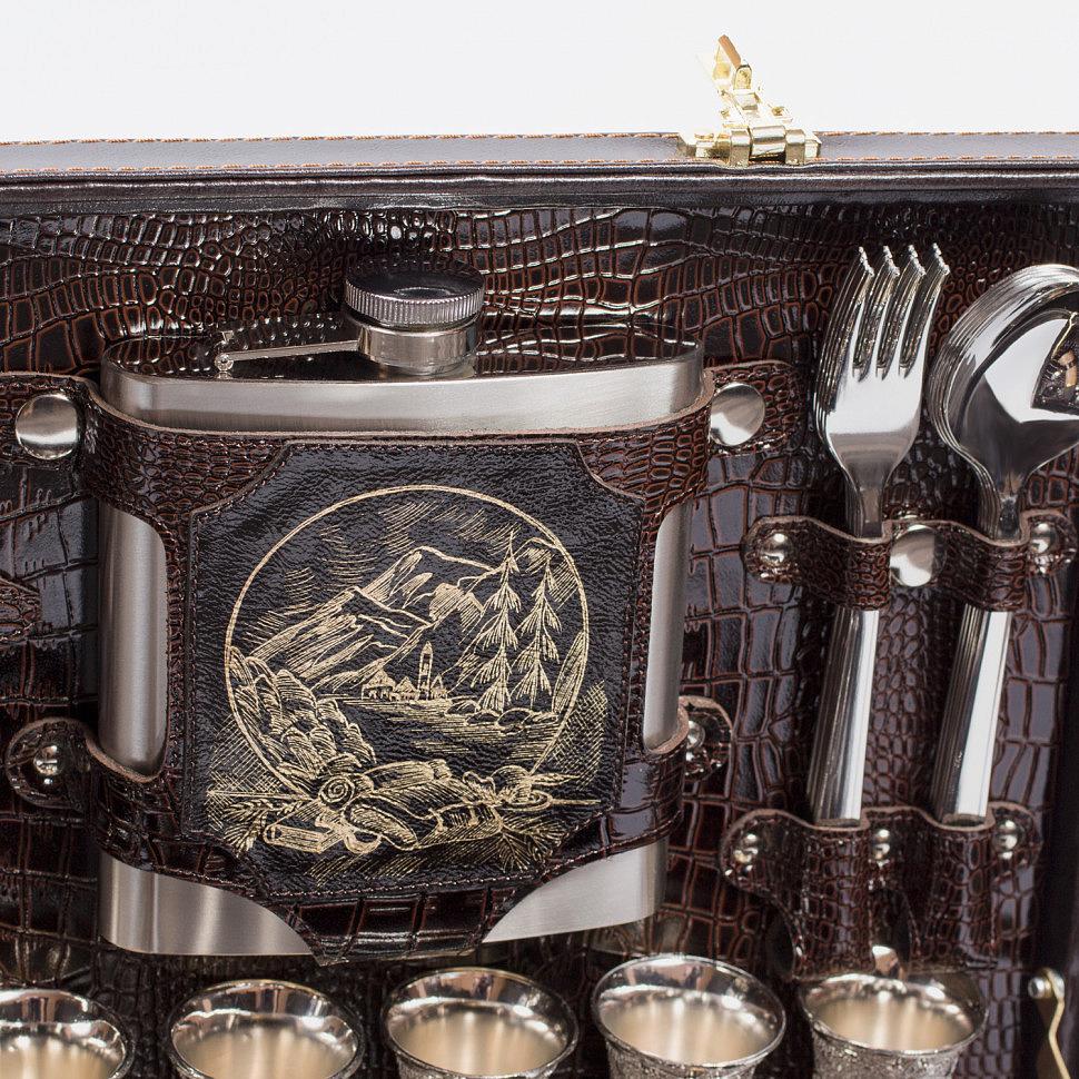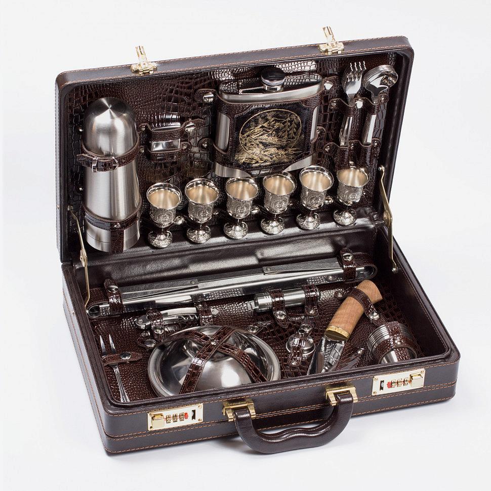 Подарочный набор для пикника на 6 персон в красивом кейсе из кожзаменителя с внутренней отделкой из искусственной кожи и фотопечатью рисунка. Прекрасный, дорогой и оригинальный подарок.