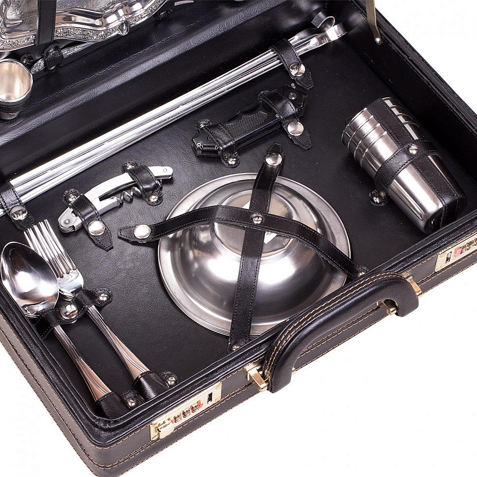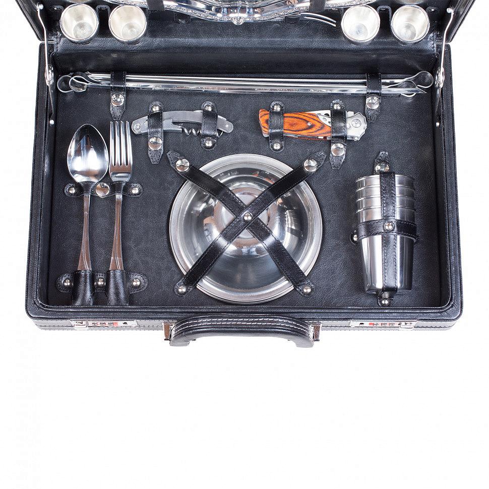 Позвольте себе ощущение праздника и уюта с этим элегантным подарочным набором для пикника на 4 персоны! Стильный кейс из искусственной кожи не только выглядит дорого и презентабельно, но и удобно организует все необходимые аксессуары для комфортного отдыха на природе. Этот комплект — идеальный подарок для тех, кто ценит качество, оригинальность и стиль в каждом моменте.