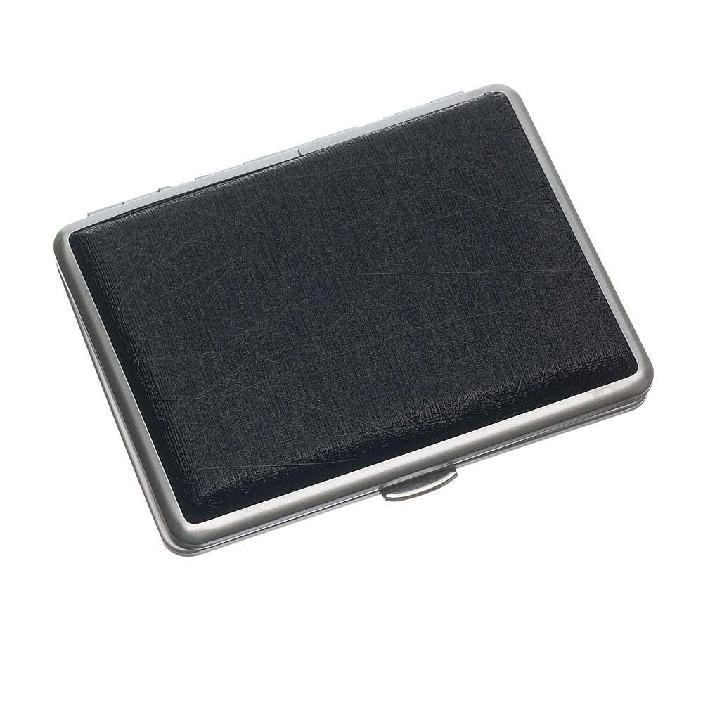 Портсигар S.Quire, сталь+искусственная кожа с металлическими клипами, черный цвет, 74*95*18 мм S300B-3713-16-2