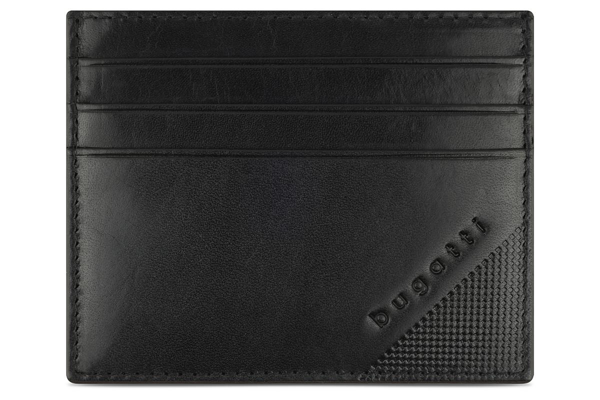 Портмоне для кредитных карт BUGATTI АРИСТОКРАТ | NOBILE, с защитой данных RFID, черное, натуральная воловья кожа, 10х0,3х8 см