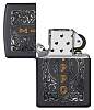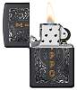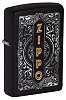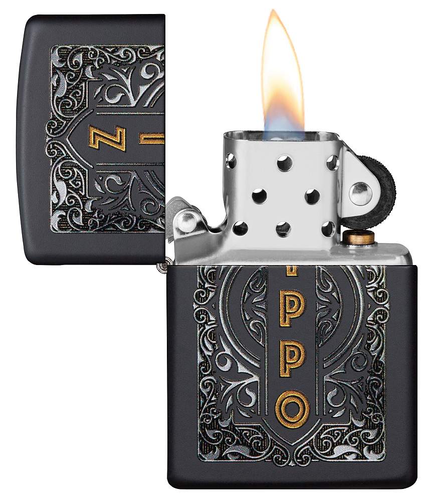 Зажигалка с черной матовой отделкой отличается элегантным дизайном в традиционном стиле Zippo. Благодаря процессу цветного изображения золотистые вертикальные буквы Zippo изящно обрамлены красивой серебристой филигранью. Поставляется в подарочной коробке. Для оптимальной работы рекомендуется использовать только оригинальное топливо Zippo.