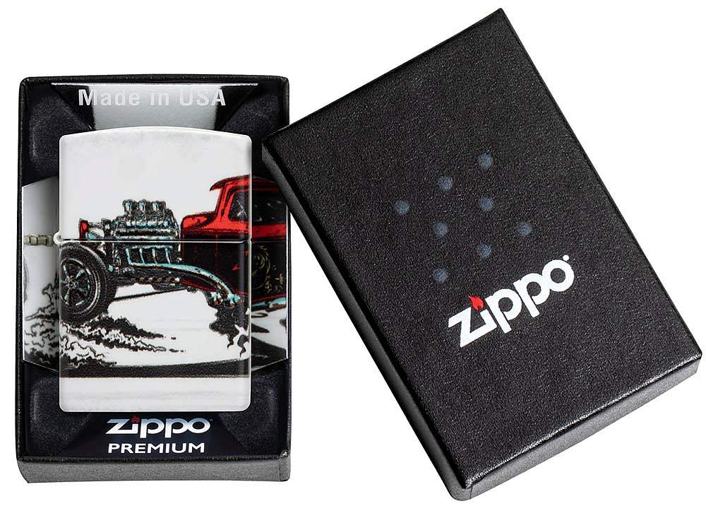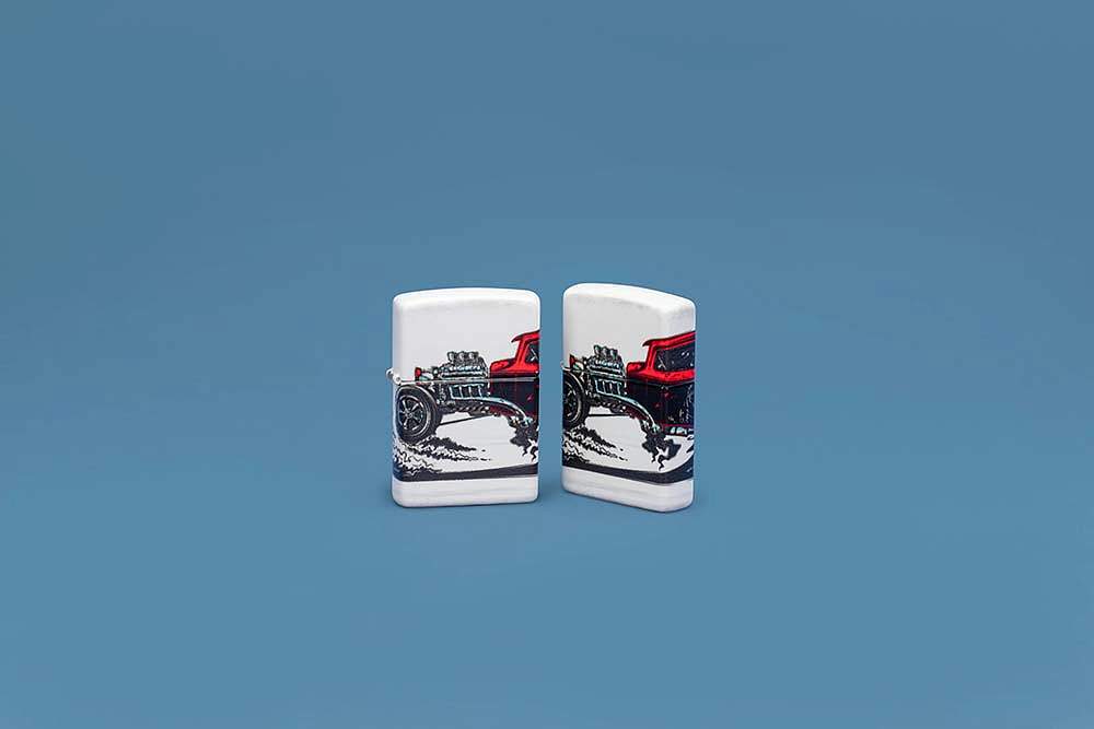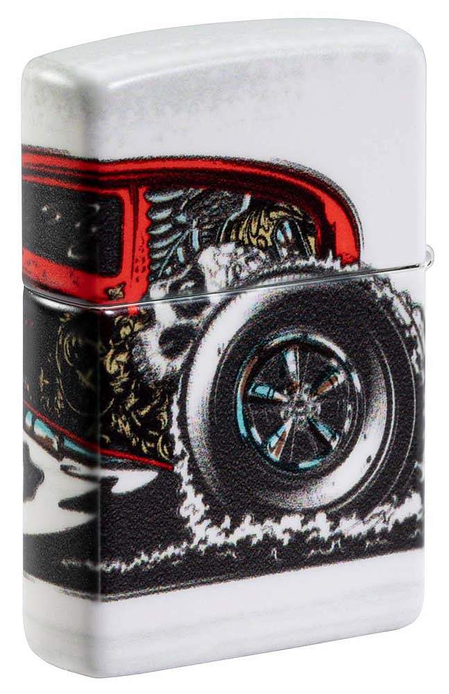 Зажигалка ZIPPO Hot Rod Design с покрытием 540 Matte, латунь/сталь, белая, матовая, 38x13x57 мм 48660