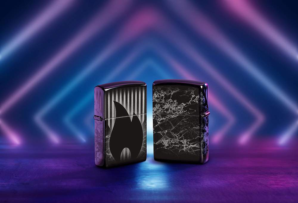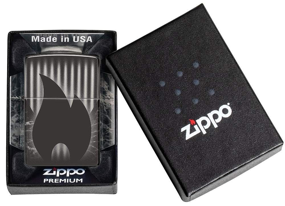 Центральное место на этой элегантной зажигалке High Polish Black занимает классический значок пламени Zippo, окруженный со всех сторон тонкими узорами благодаря фотоизображению 360°.