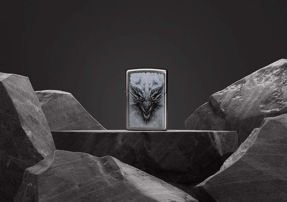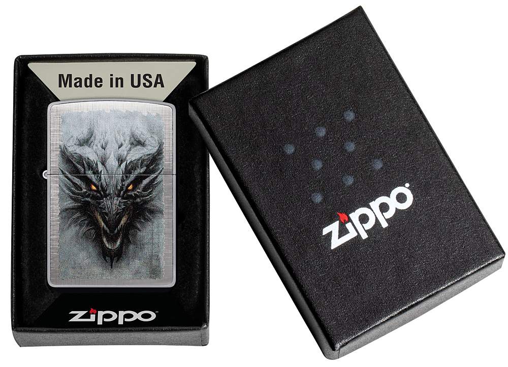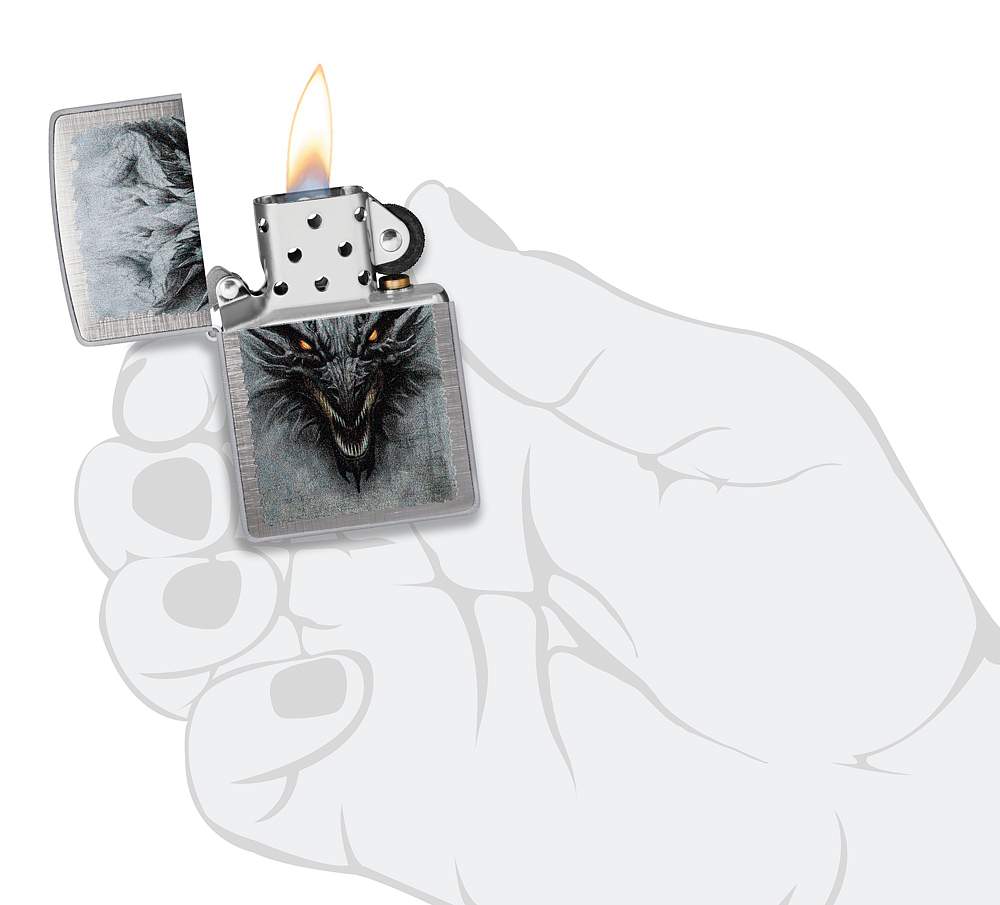 Зажигалка ZIPPO Dragon Design с покрытием Linen Weave, латунь/сталь, серебристая, 38x13x57 мм 48732