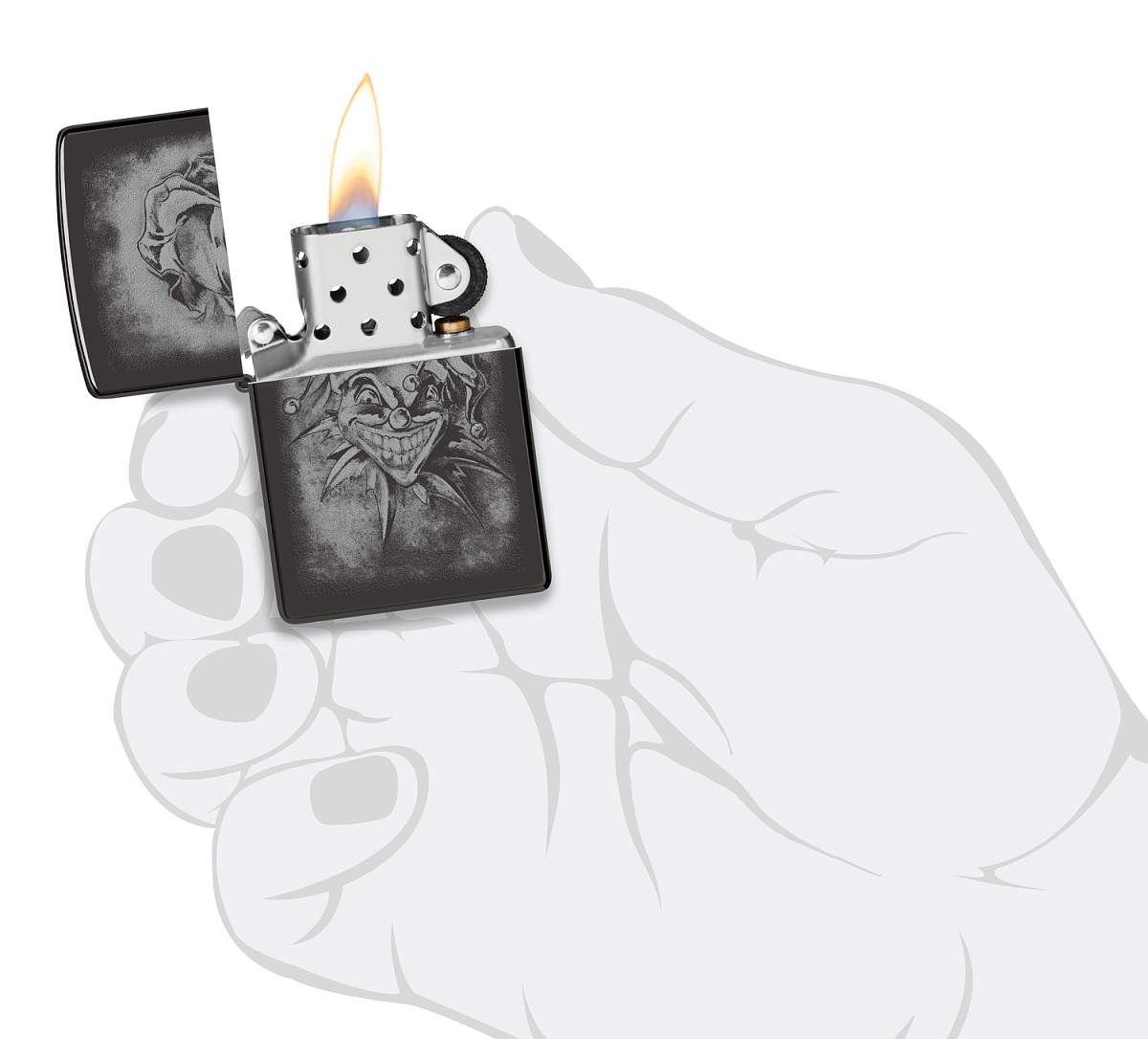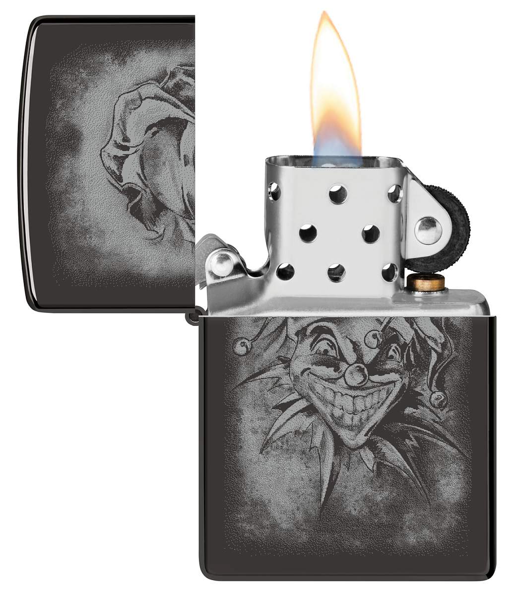 Зажигалка ZIPPO Clown с покрытием High Polish Black, латунь/сталь, черная, глянцевая, 38x13x57 мм 48914