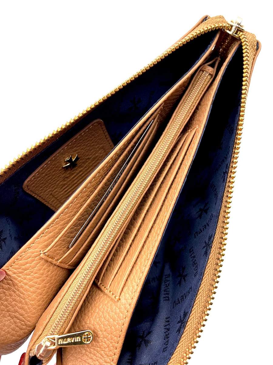 Сумка клатч NARVIN из натуральной кожи 9951-Polo Caramel