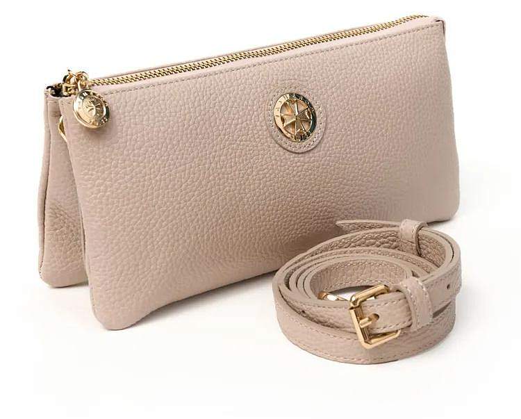 Клатч от швейцарского бренда NARVIN — стильный аксессуар для женщин, выполненный из натуральной телячьей кожи премиум-класса. Размеры сумки составляют 23 x 12 x 8 см. Клатч имеет два основных отделения, шесть ячеек для кредитных карт и три кармашка, один из которых на молнии. Аксессуар оснащён съёмным плечевым ремнём длиной 120 см, благодаря которому его можно носить на плече или через плечо.