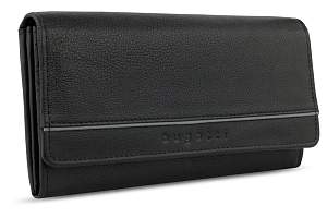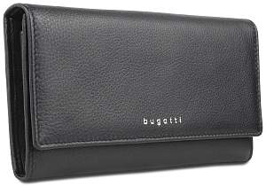 Кошелёк женский BUGATTI Linda, чёрный, натуральная воловья кожа, 19х3х10 см 49367701
