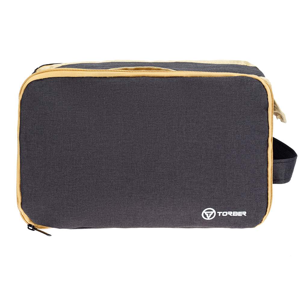 Несессер TORBER, дорожный, чёрный/бежевый, полиэстер 300D, 27 х 17 х 14 см T318-BEI