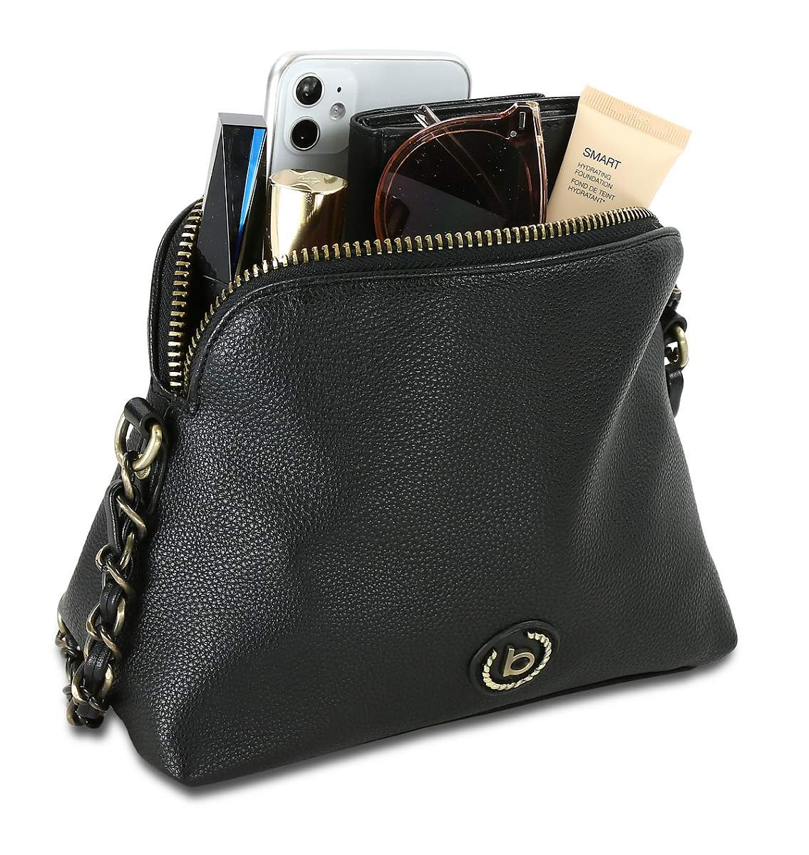 Сумка наплечная женская BUGATTI Passione, чёрная, полиуретан, 23х8х17,5 см 49253701