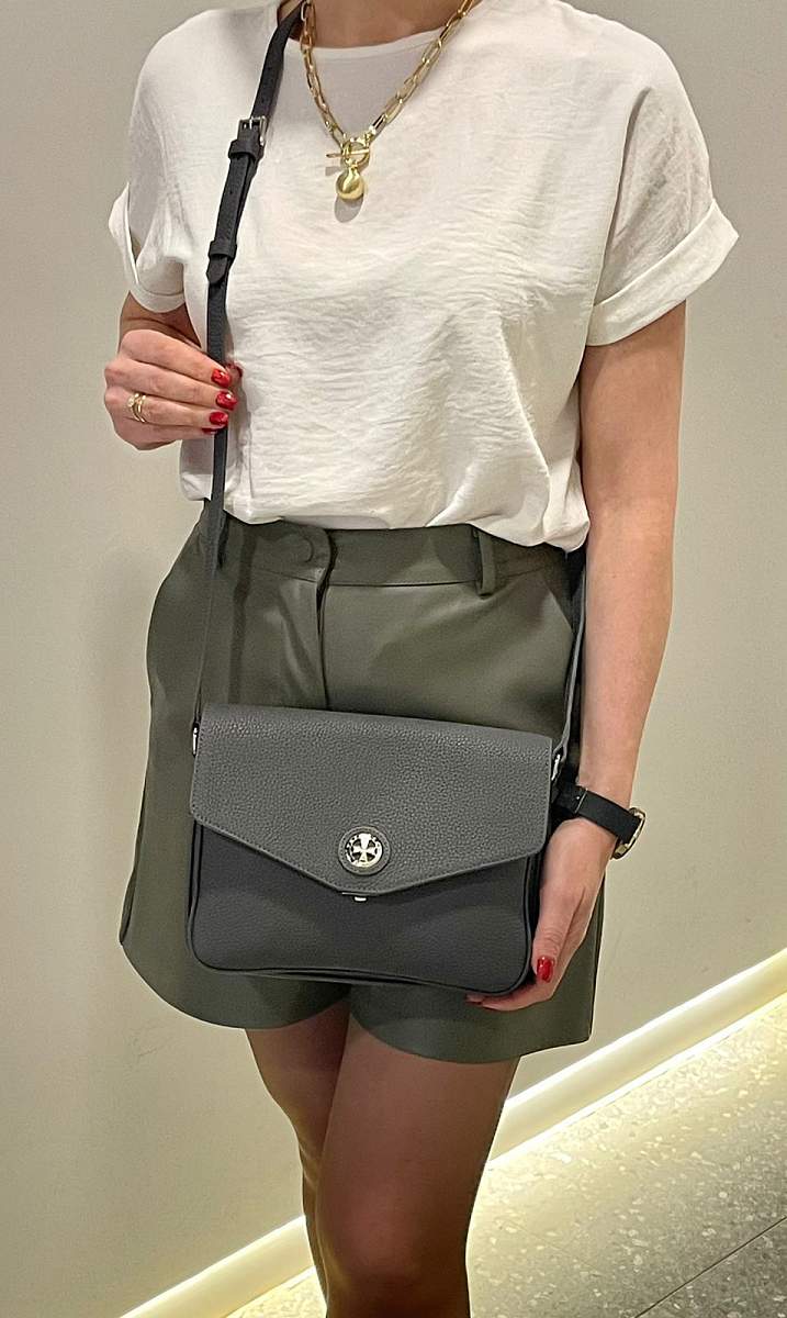 Внутри сумки расположено три независимых отделения, позволяющих аккуратно разместить все необходимые мелочи, а также карман для более мелких предметов. Элегантная сумка с дизайнерской металлической фурнитурой и изящными линиями подчеркнет ваш утонченный вкус и умение подбирать модные аксессуары.
