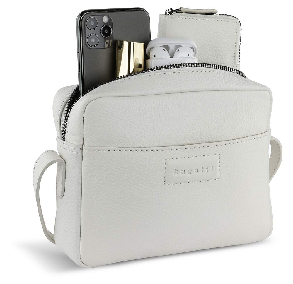 Сумка кросс-боди женская BUGATTI Elsa, белая, воловья кожа/полиэстер, 19х5,5х14 см 49460340