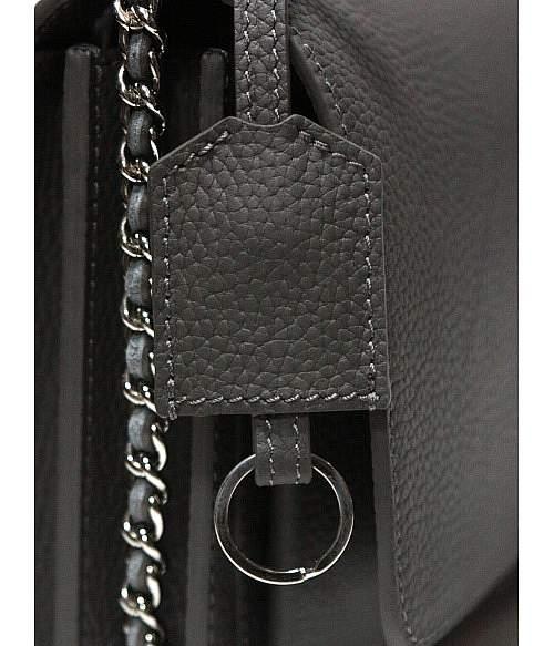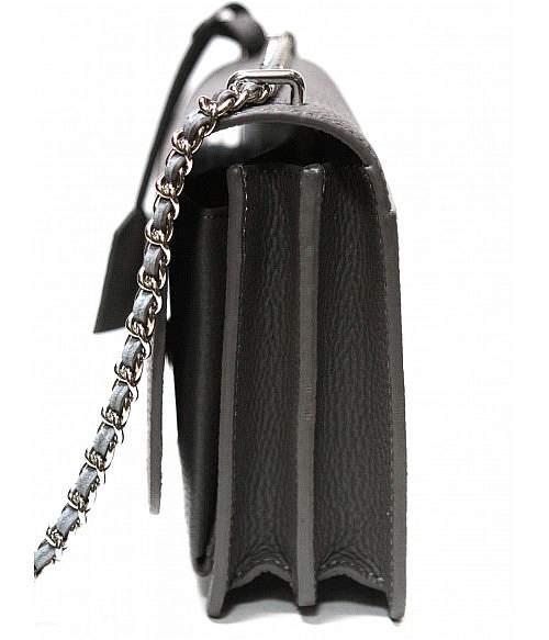 Изделие оснащено несъёмным ремнём, изготовленным из цепочки с продетой кожей. Расстояние от середины ремня до сумки составляет 50 сантиметров.