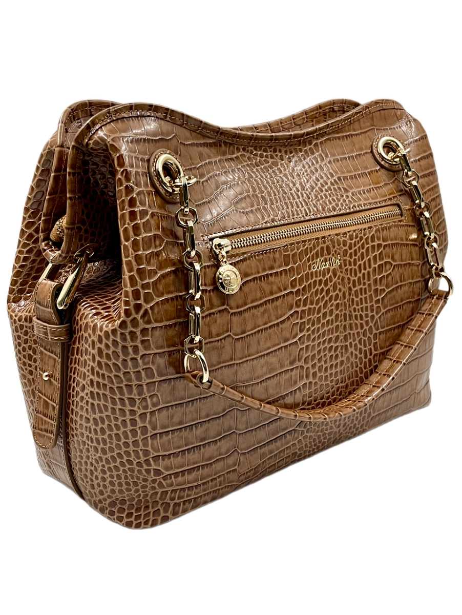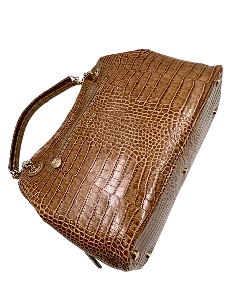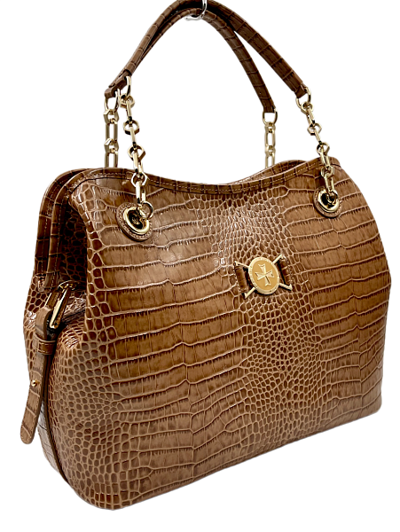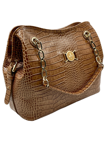 Сумка тоут из натуральной кожи 9815-Croco Cappuccino