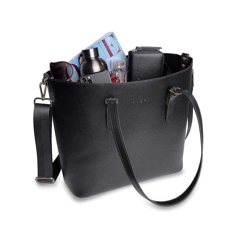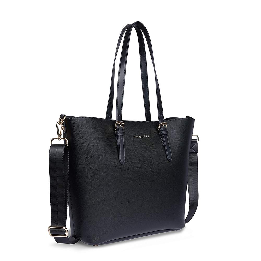 Сумка-шоппер женская BUGATTI Ella, черная, полиуретан, 47,5х12х32 см 493625S01