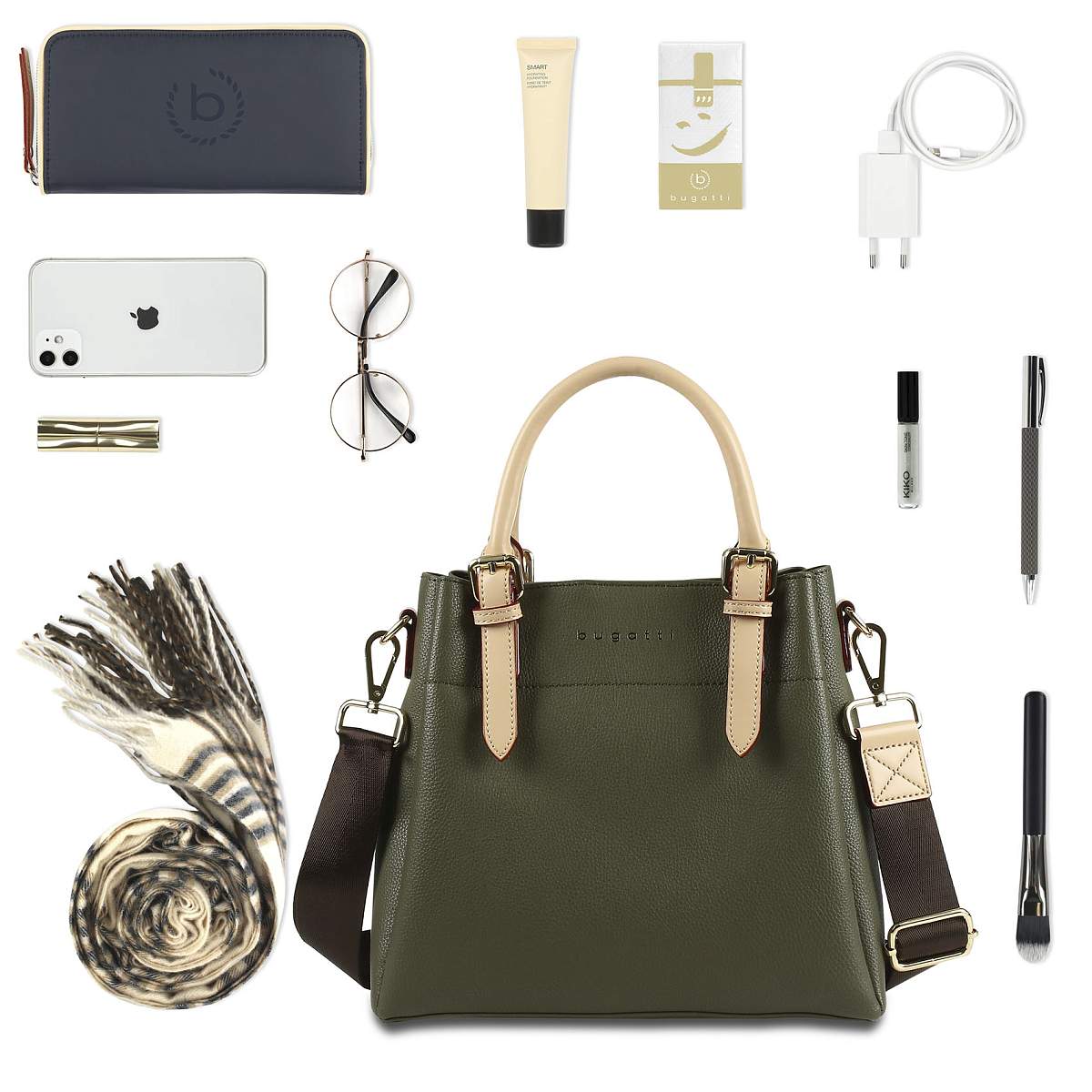 Сумка женская BUGATTI Ella, оливковая, полиуретан, 27х12х23,5 см 49362084