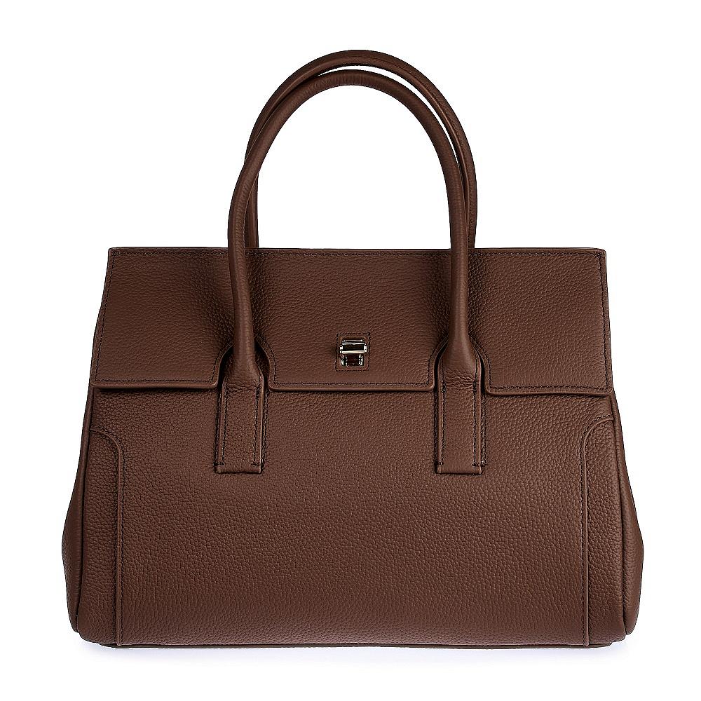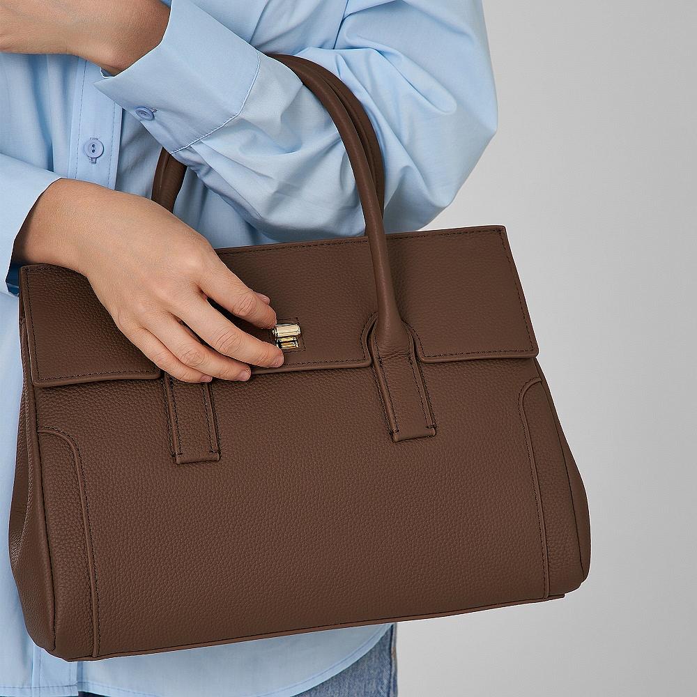 Стильная женская сумка сэтчел выполнена из матовой зернистой натуральной кожи, которая имеет невероятно приятную на ощупь фактуру. Габариты сумки через плечо (ВхШхГ) 24х30х11 см. Сумка через плечо с подкладом из полиэтера в жестком каркасе. Под клапаном на замке 2 вместительных отделения, в которых расположены 2 кармана на молнии и открытый карман. Сумка легкая и вместительная, чтобы самые нужные вещи всегда были под рукой. В комплекте кожаный плечевой ремень, регулируется по длине до 115 см, высота ручки 10 см. Фурнитура выполнена в металле золотистого цвета. Сумка с застежкой поставляется в текстильной (пыльник) и полиэтиленовой упаковке, что защищает ее от повреждений, а также позволяет удобно хранить женскую сумочку в дальнейшем использовании.