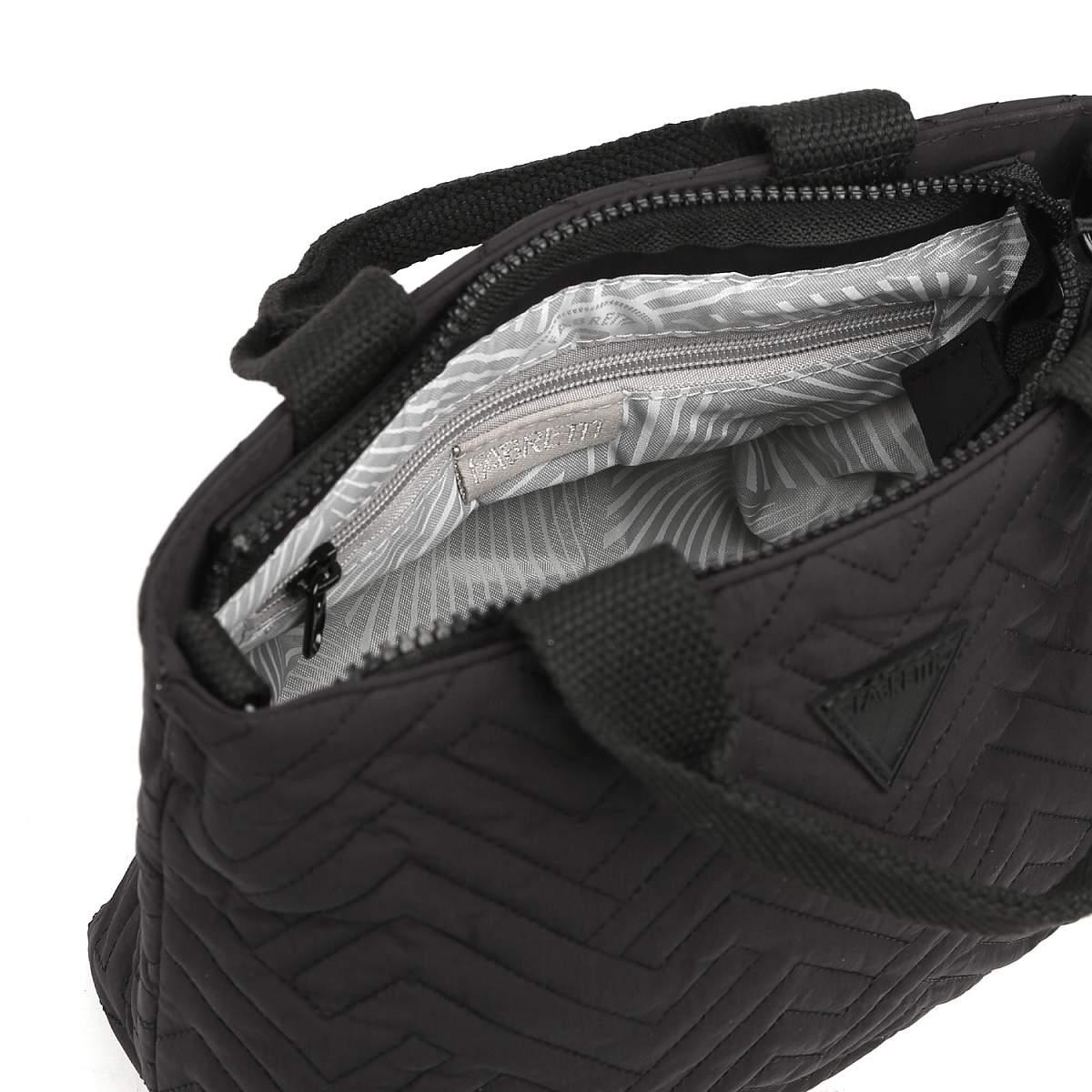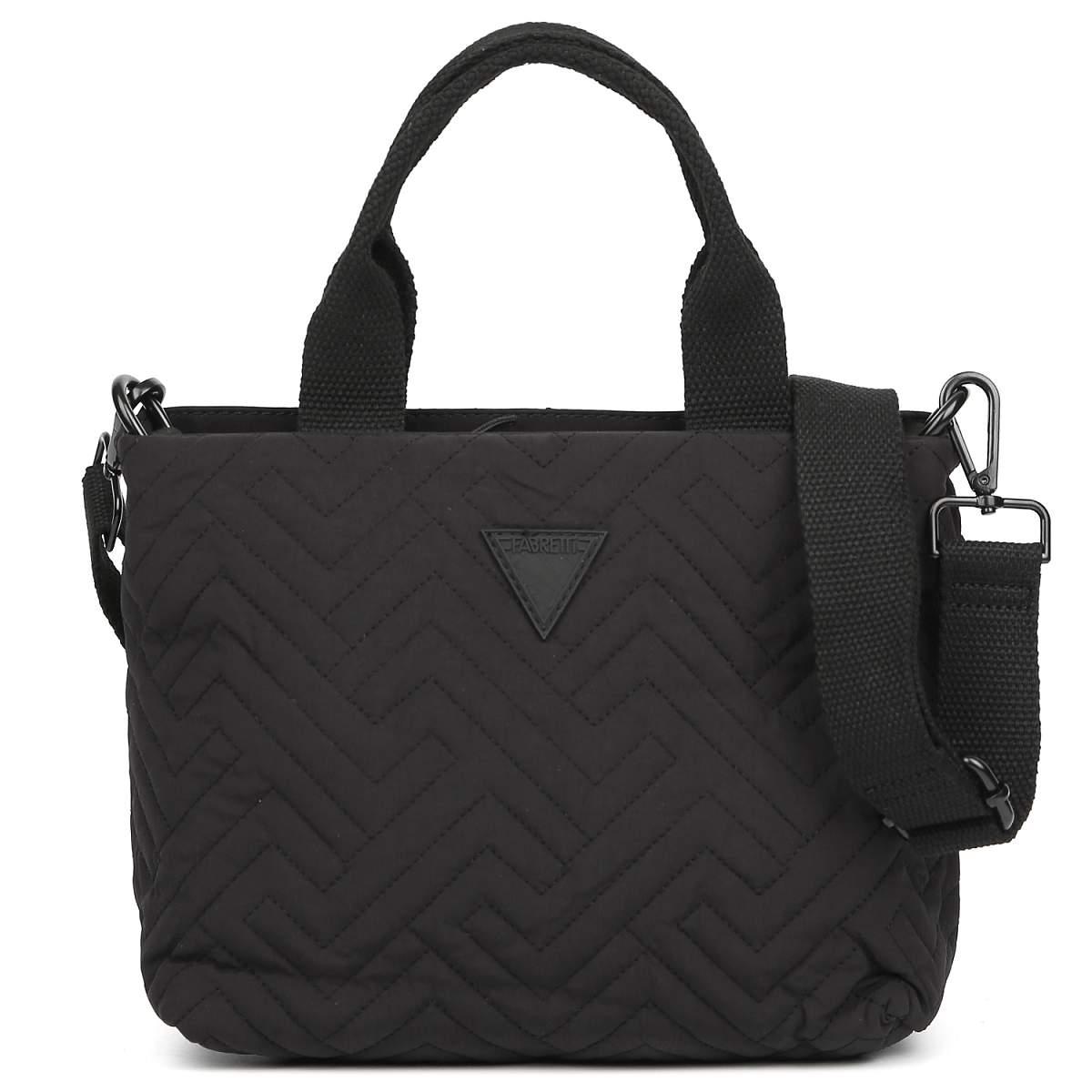 Компактная сумка через плечо FABRETTI в черном цвете выполнена из высокотехнологичного влагостойкого полиэстера стеганой фактуры. Он практичен и прост в уходе. Основное отделение закрывается на молнию. Внутри 3 боковых кармана для мелочей: 2 открытых и на молнии. Две удобные ручки позволяют носить аксессуар в руке. Съемный плечевой ремень регулируется по длине, ширина - 3 см. При желании его можно отстегнуть или заменить на другой. Сумка станет незаменимым аксессуаром в поездке, а также гармонично впишется в стиль casual.