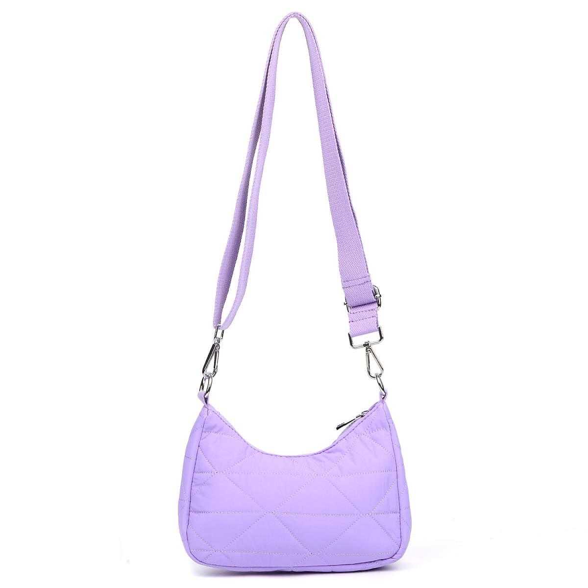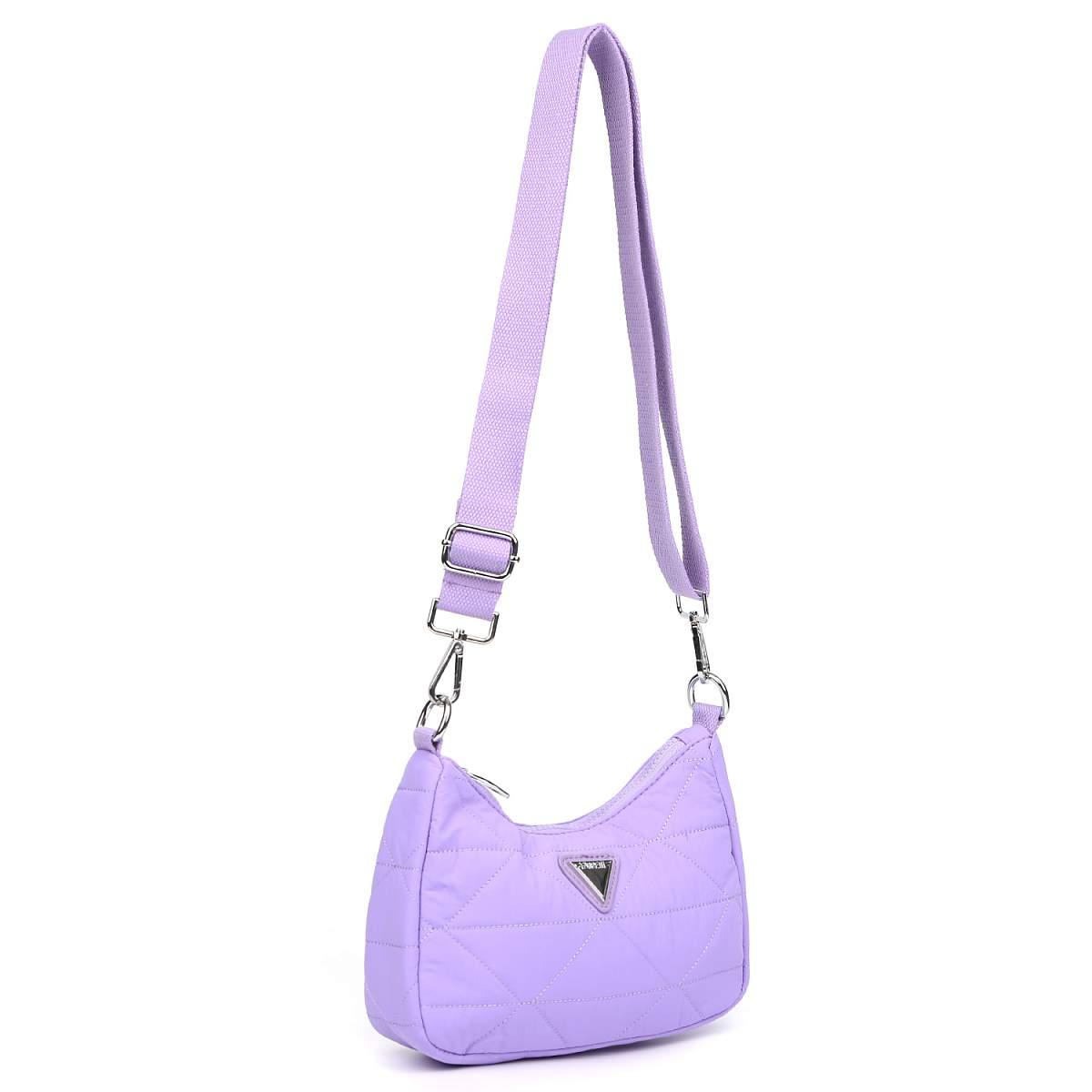 Компактная сумка через плечо FABRETTI в сиреневом оттенке выполнена из высокотехнологичного влагостойкого полиэстера стеганой фактуры. Он практичен и прост в уходе. Основное отделение закрывается на молнию с металлическим поводком. Внутри 3 боковых кармана для мелочей: 2 открытых и на молнии. Съемный плечевой ремень регулируется по длине, ширина - 2,5 см. При желании его можно отстегнуть и использовать модель в качестве косметички. Сумка станет незаменимым аксессуаром в любой поездке, а также гармонично впишется в стиль casual.