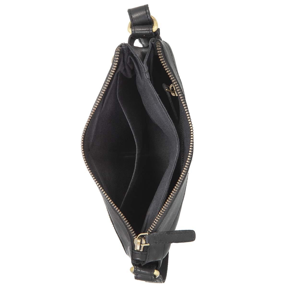 Внутри сумки располагается два просторных отделения, в каждом из которых имеются карманы для организации мелких предметов и ценностей, а также отделение для мобильного телефона.