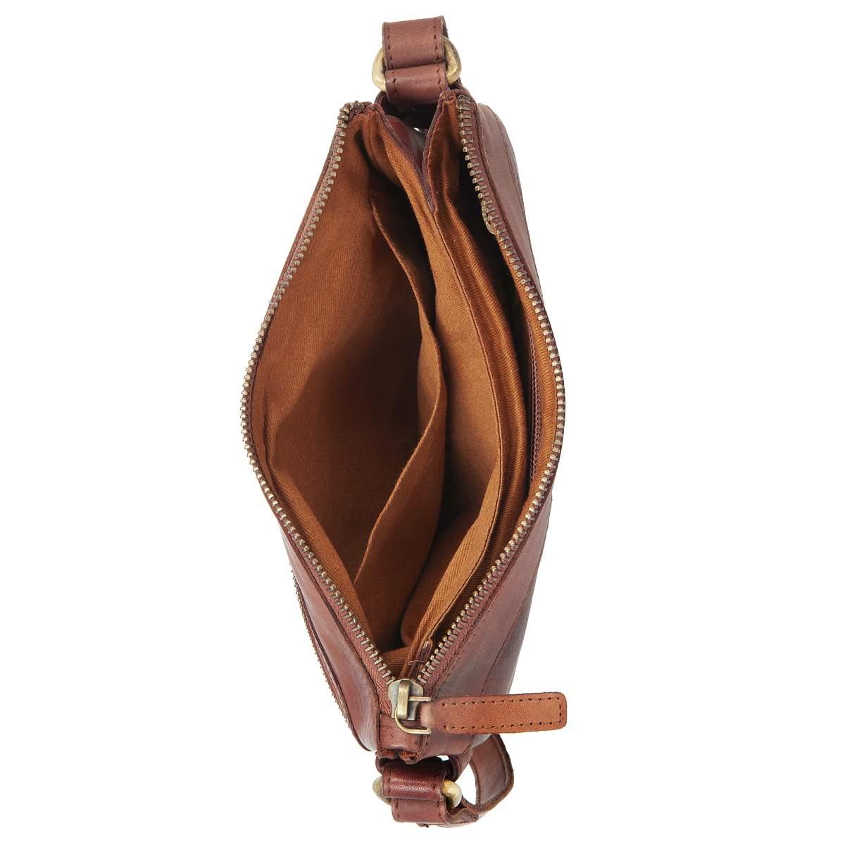 Внутри сумки располагается два просторных отделения, в каждом из которых имеются карманы для организации мелких предметов и ценностей, а также отделение для мобильного телефона.