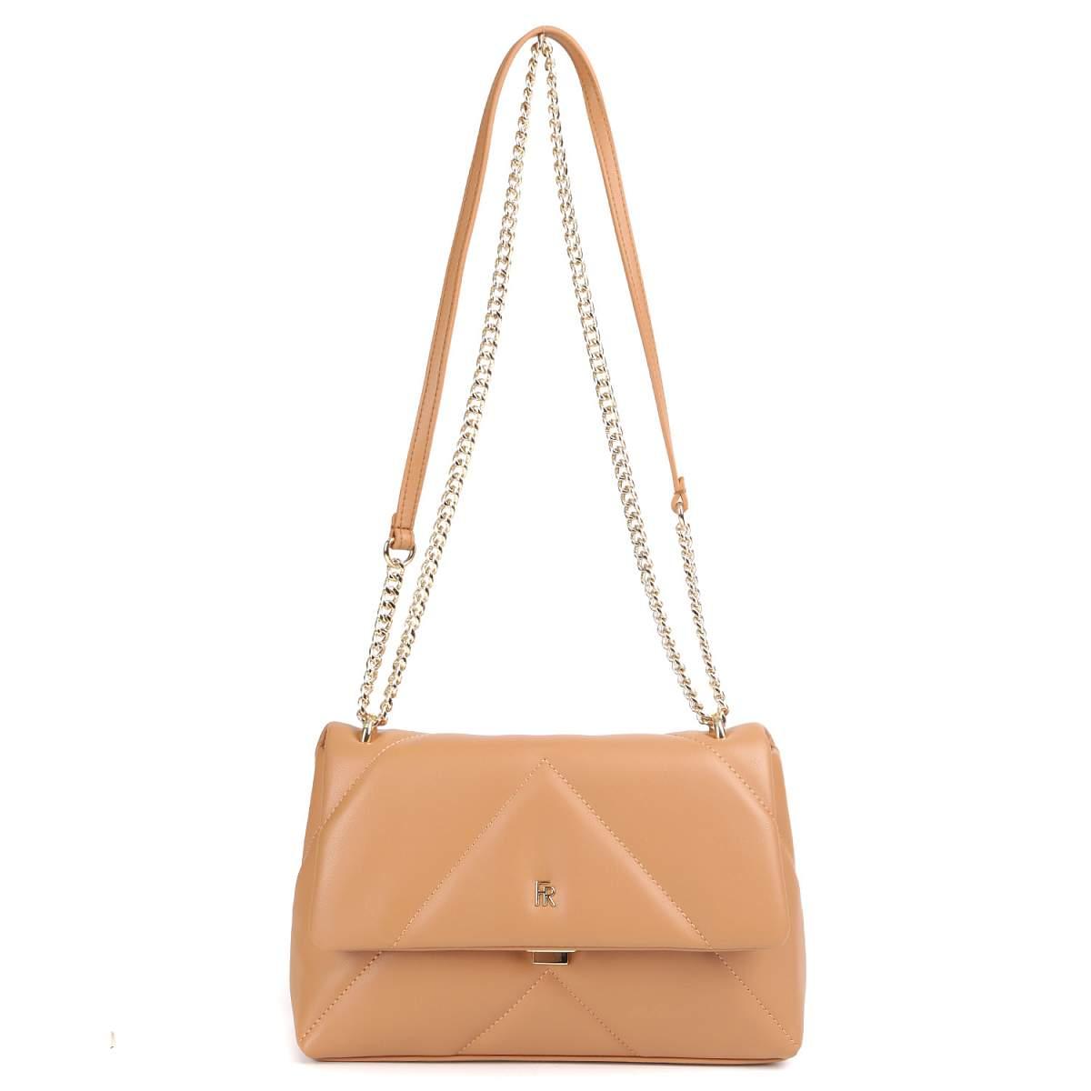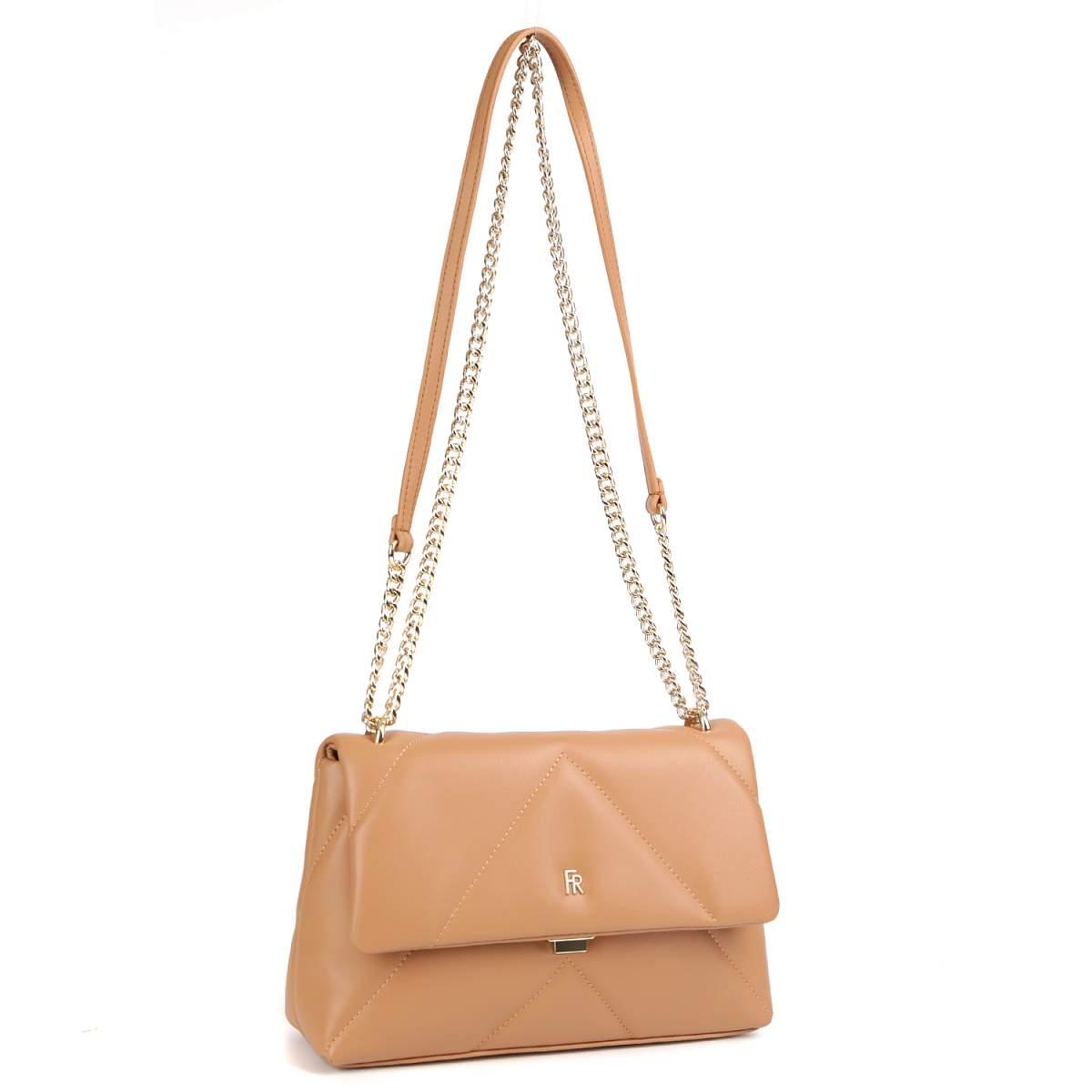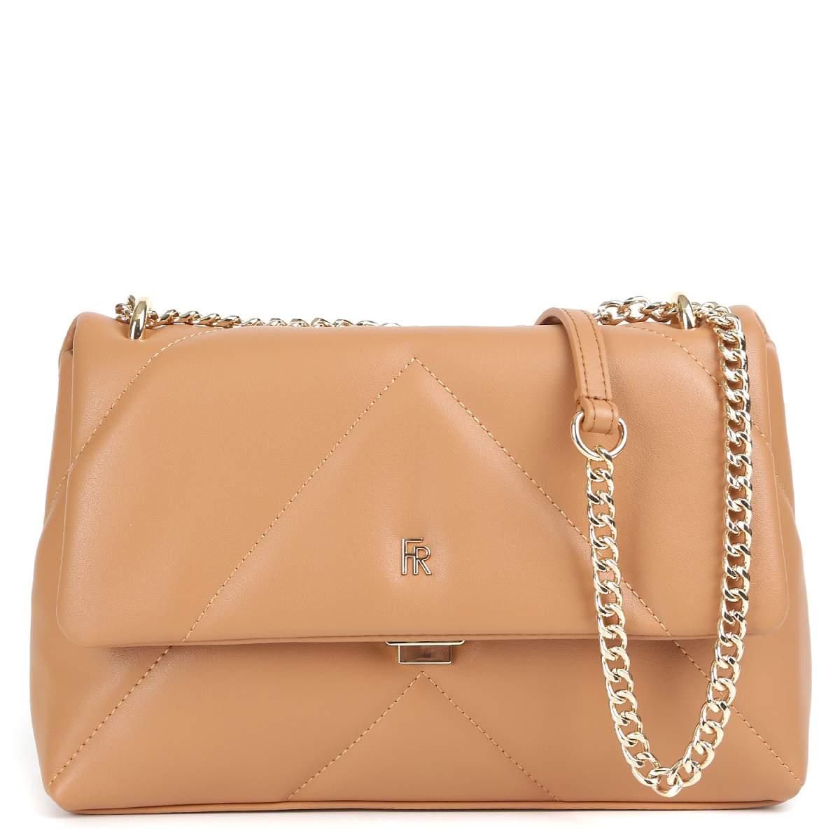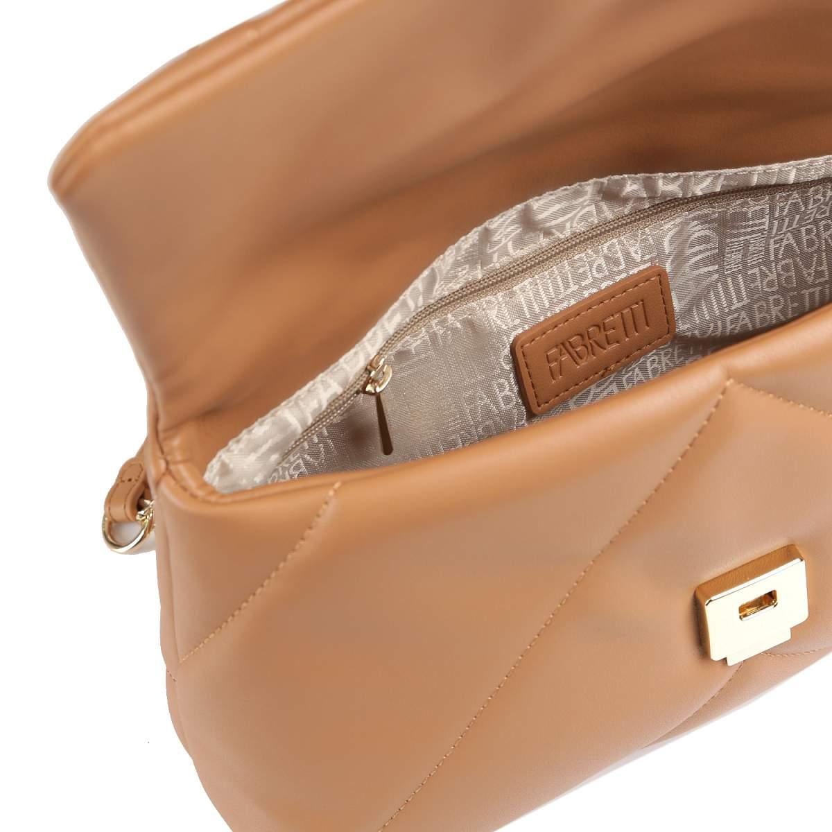 Компактная кросс-боди FABRETTI в карамельном оттенке выполнена из натуральной кожи нежной выделки и декорирована геометрической стёжкой. Сумка закрывается клапаном с механическим замком. Внутри 2 боковых кармана для мелочей: открытый и на молнии. Изящный плечевой ремень-цепочку можно носить двумя способами: через плечо или на плече, трансформировав в 2 ручки. Цвет фурнитуры - золото.