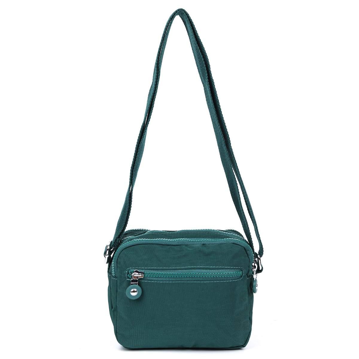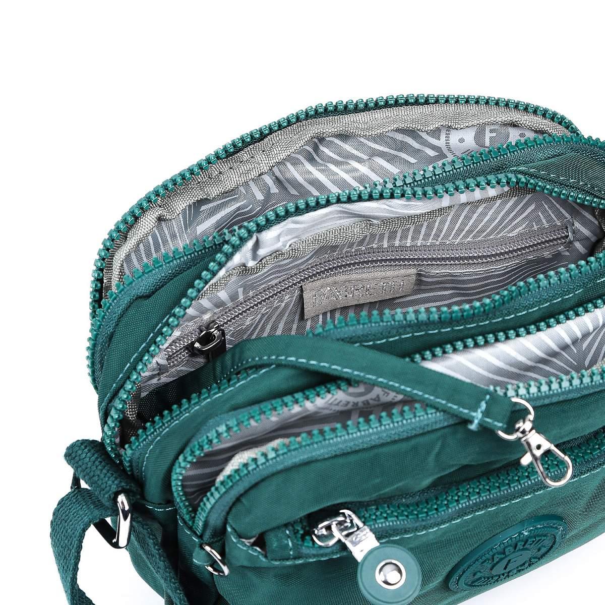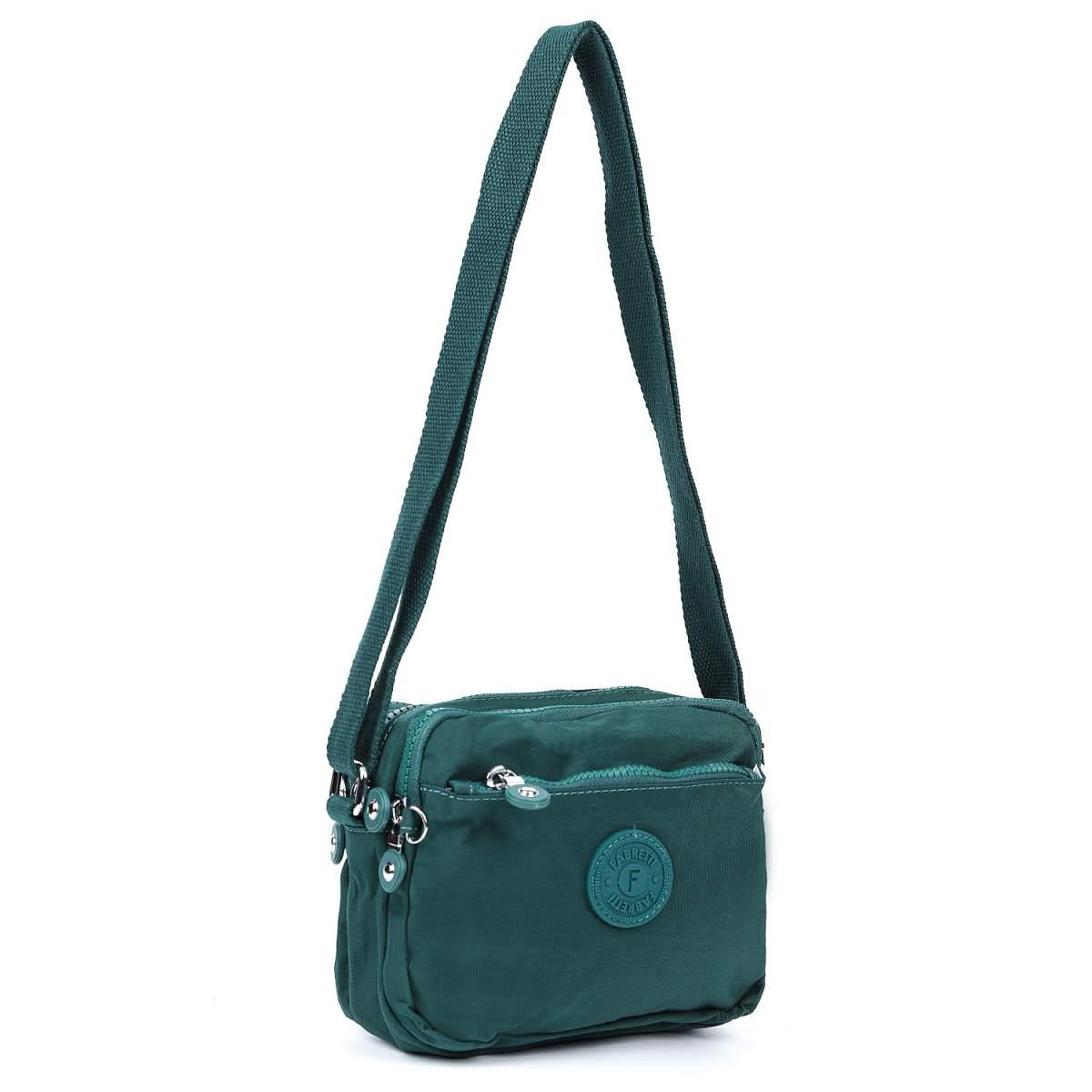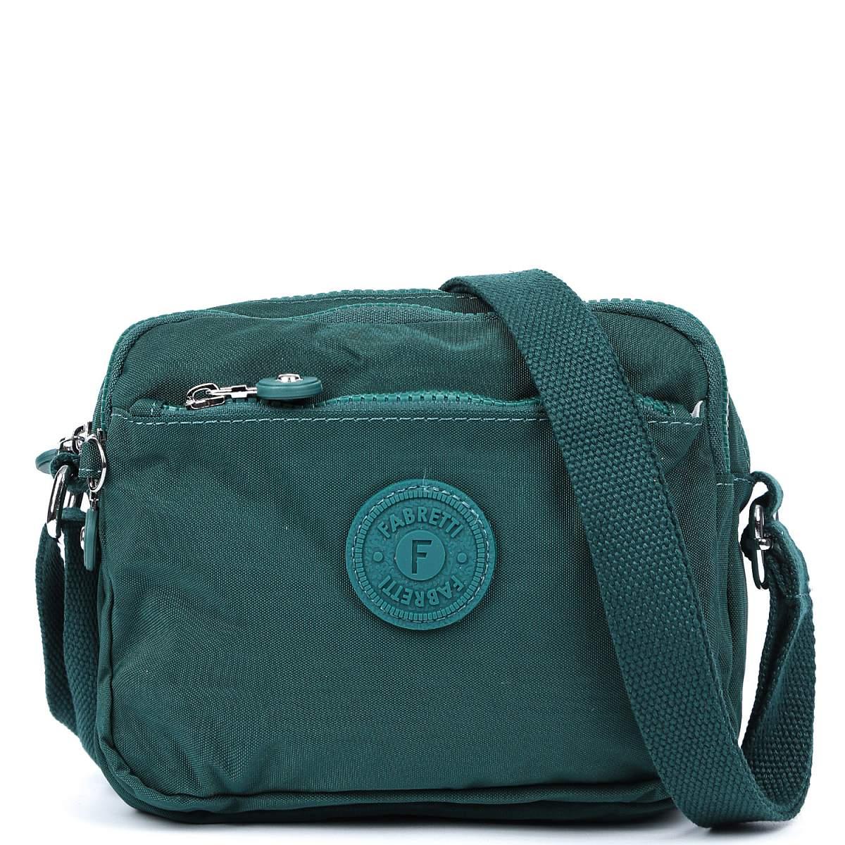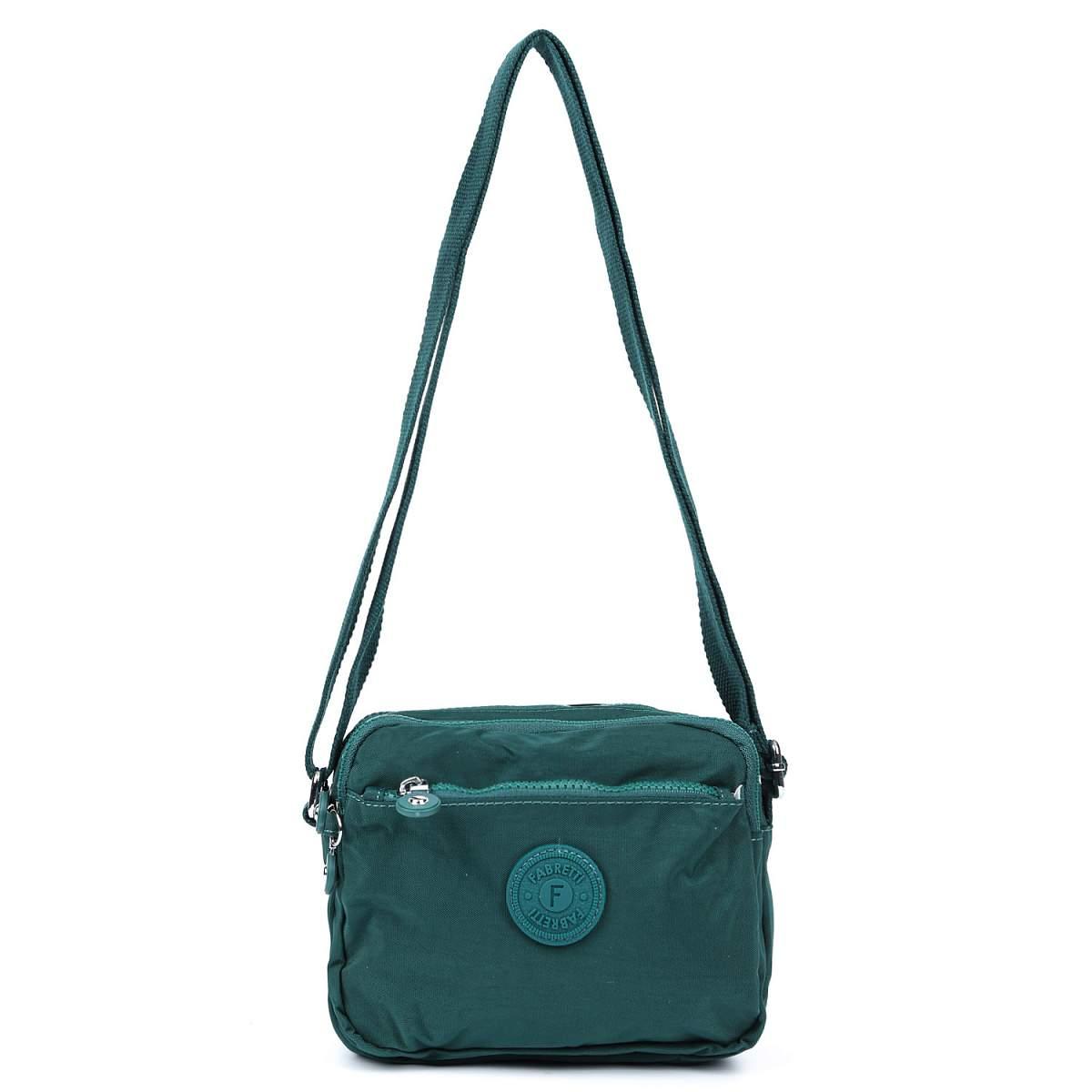 Текстильная сумка кросс-боди FABRETTI в зеленом оттенке выполнена из высокотехнологичного влагостойкого полиэстера легкой жатой фактуры. Он практичен и прост в уходе. Модель отличается компактным размером и продуманной системой хранения. В сумке 3 отделения, каждое из которых закрывается на полукруглую молнию с удобным поводком. Внутри центрального отделения есть 3 боковых кармана для мелочей: 2 открытых и на молнии. Карабин на шнурке поможет быстро найти ключи в сумке. На лицевой стороне расположен карман быстрого доступа на молнии. На тыльной стороне также предусмотрен карман на молнии. Текстильный плечевой ремень регулируется по длине, ширина - 2,5 см.