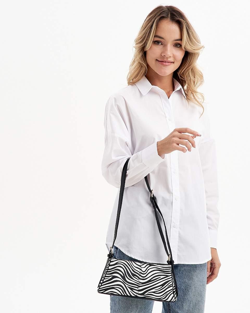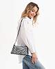 Женская маленькая сумка багет выполнена из искусственной кожи с приятной текстурой. Габариты сумочки - (ВхШхГ) 12х27х4 см. Основное отделение на подкладе из плотного полиэстера закрывается на надежную молнию. Внутри один кармашек на молнии. В комплекте съемный плечевой ремень, регулируется до 115 см. позволит носить сумку на плечо и через плечо как кроссбоди. Фурнитура выполнена из металла в золотистом цвете. Сумка с ручкой поставляется в текстильной (пыльник) и полиэтиленовой упаковке, что защищает ее от повреждений, а также позволяет удобно хранить женскую сумочку в дальнейшем использовании.