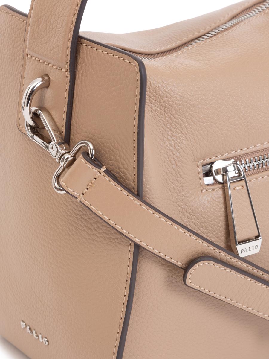 Женская сумка торговой марки Palio. Сумка закрывается на металлическую молнию. Внутри - одно отделение, в котором имеется карман на молнии, открытый карман и карман для мобильного телефона. На задней стенке - карман на молнии. Высота ручки - 15 см. Длина наплечного ремня - 120 см. Модель не имеет ножки на дне.