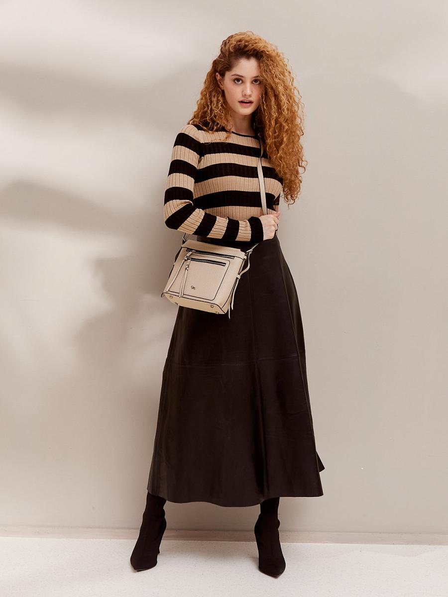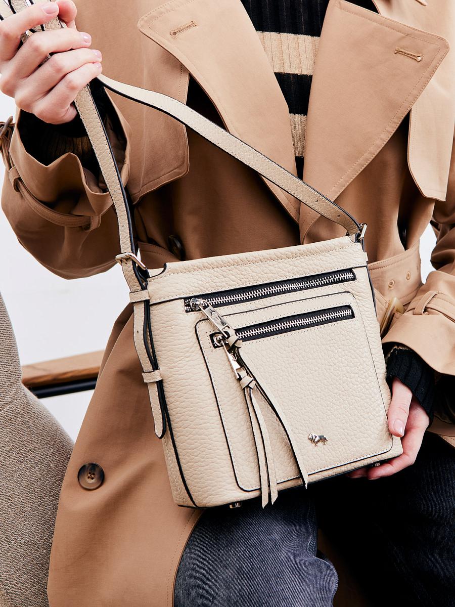 Женская сумка торговой марки Labbra из натуральной кожи. Модель застегивается на металлическую молнию. Содержит внутри одно отделение, в котором имеются карман на молнии и открытый карман. На передней стенке есть два кармана на молниях, на задней - карман на молнии и открытый карман. Длина регулируемого наплечного ремня из натуральной кожи - 112 см, ширина - 1,5 см. Модель имеет ножки на дне. Не вмещает формат А4.