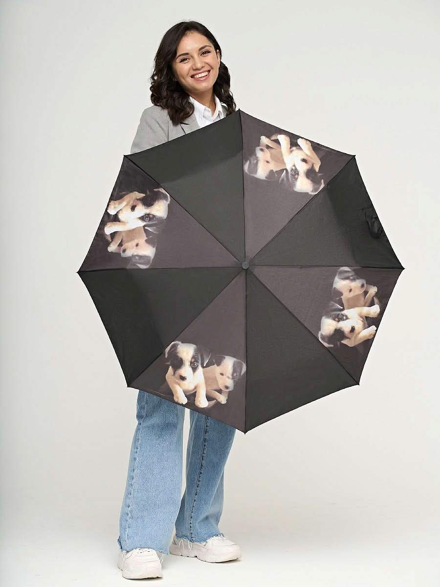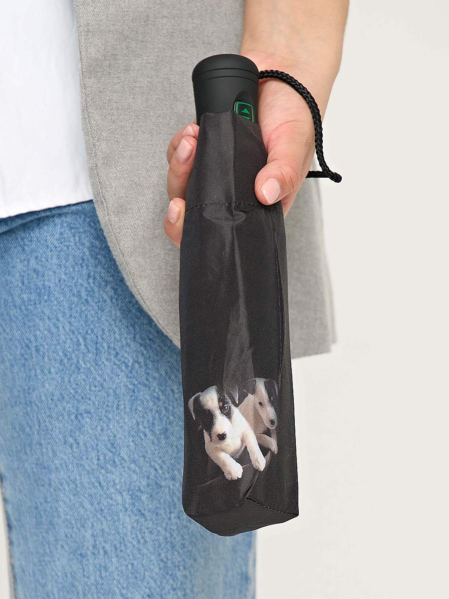 Очаровательные собачки вызовут чувство умиления у окружающих и расслабленное, нежное настроение у того, кто находится под куполом этого зонта, и в буквальном смысле слова встречается взглядом с первым из двух симпатяг. Рифленая рукоять выполнена из нескользящего материала, ее удобно удерживать даже в мокрой от дождя ладони при порывистом ветре. Каркас ветроустойчивый, вес модели достаточно небольшой для зонтов-автоматов.