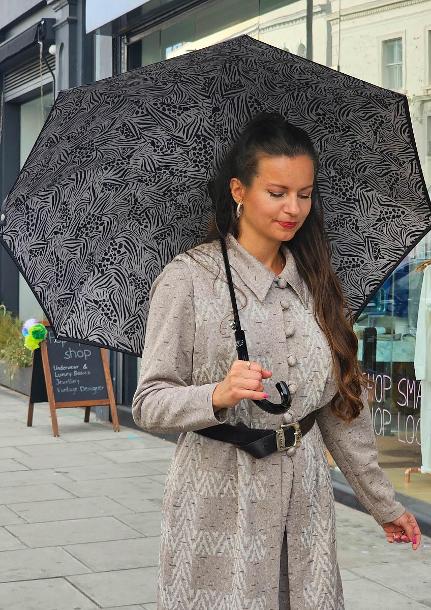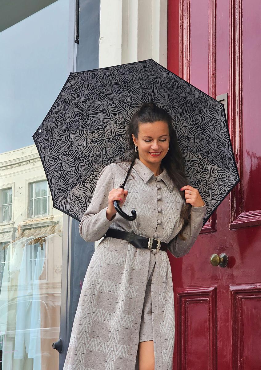 Зонт трость женская от английского бренда Fulton с двойным куполом. Зонт женский автомат имеет стальной стержень и 8 спиц. Удобная ручка крюк. Зонт с большим куполом, его диаметр 94 см. Длина в сложенном виде - 84 см. Вес модели 483 гр. Конструкция двойного купола скрывает спицы для изысканной отделки