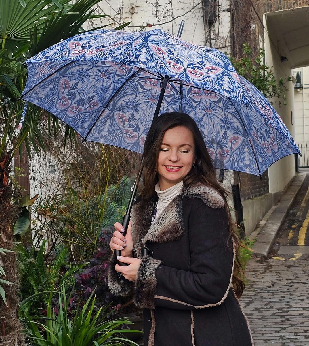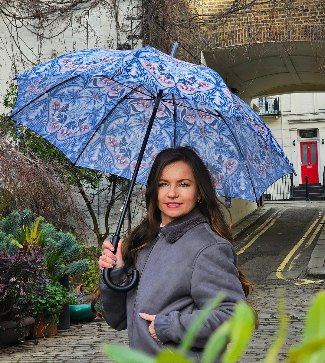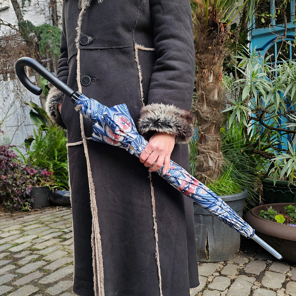 Зонт трость женский от английского бренда Fulton и неподвластные времени цветочные принты от самого влиятельного дизайнера девятнадцатого века William Morris. Зонт защитит Вас не только от дождя, но и от солнца, купол зонта с высокой защитой от ультрафиолета (UPF50+). Зонт облегчённый, весом 360 гр. Имеет 8 прочных спиц, выполненных из фибергласса. Зонт с большим куполом, диаметр купола 100 см, длина зонта с рисунком в сложенном виде 88 см. Зонт механический. Стержень и ручка крюк выполнены из натурального дерева, поэтому зонт прочный и в тоже время элегантный и статусный. Зонт трость с красивым принтом - это отличный подарок.